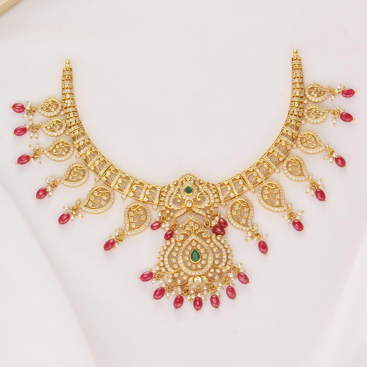 This necklace is crafted from 92.5 Sterling Silver and features 24-karat gold plating as well as semi precious stones.
