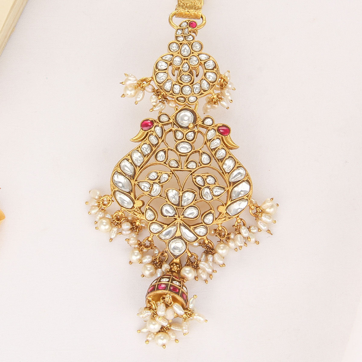 Add an elegant touch to your waist with this Kundan stone-studded waist charm. Made from 92.5% silver and plated in gold, this charming accessory also features delicate beads.