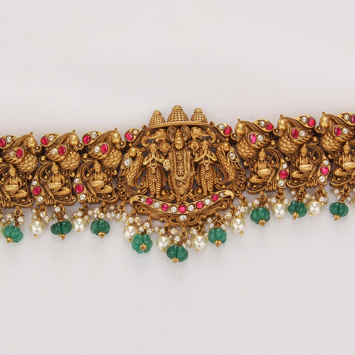 92.5 gold plated nagas oddiyanam/vadanam. This is studded with Semi-Precious stones that cast an auspicious blessing on the bride.