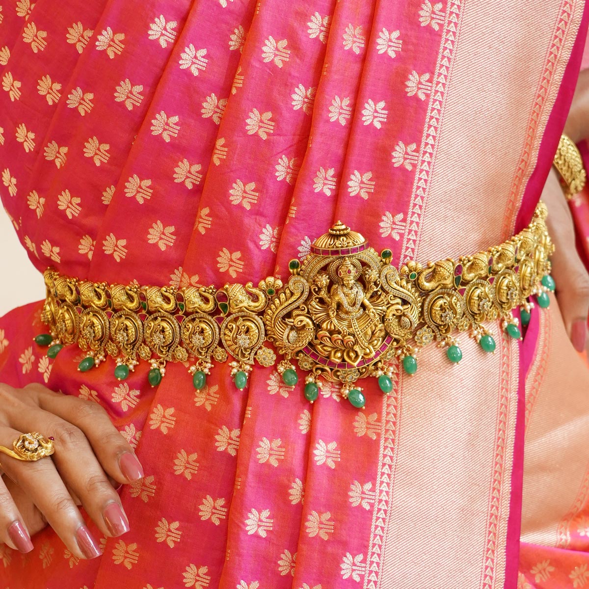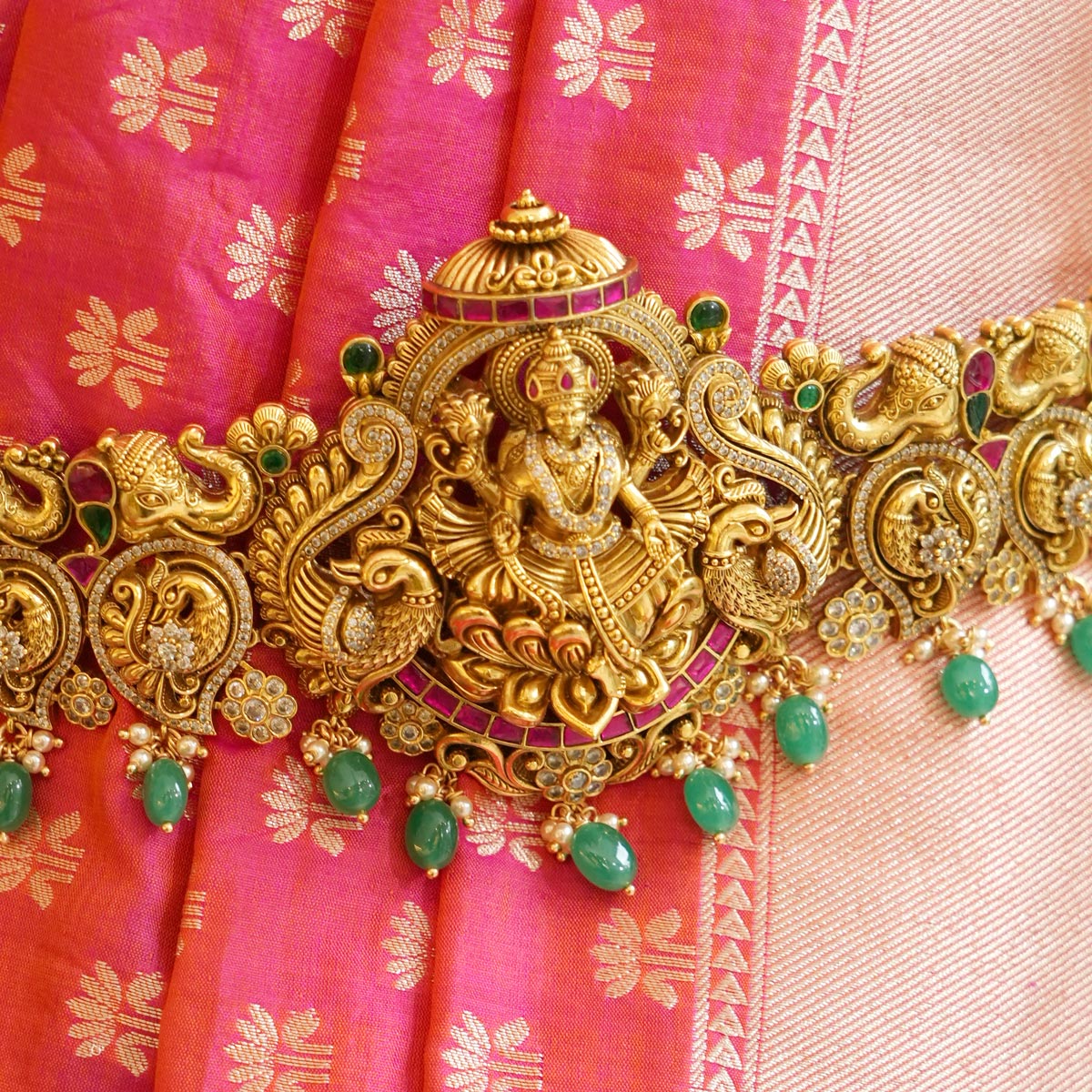 92.5 gold plated nagas oddiyanam/vadanam. this is studded with Semi-Precious stones that cast an auspicious blessing on the bride.