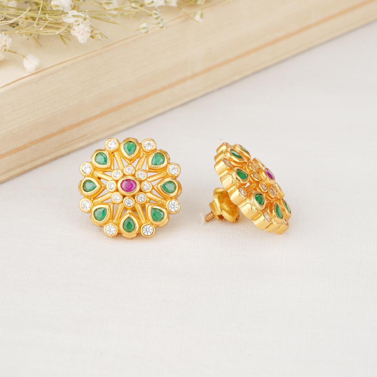 Crafted with 92.5% pure sterling silver and enhanced by 24-karat gold plating, these earrings are embellished with semi-precious stones.