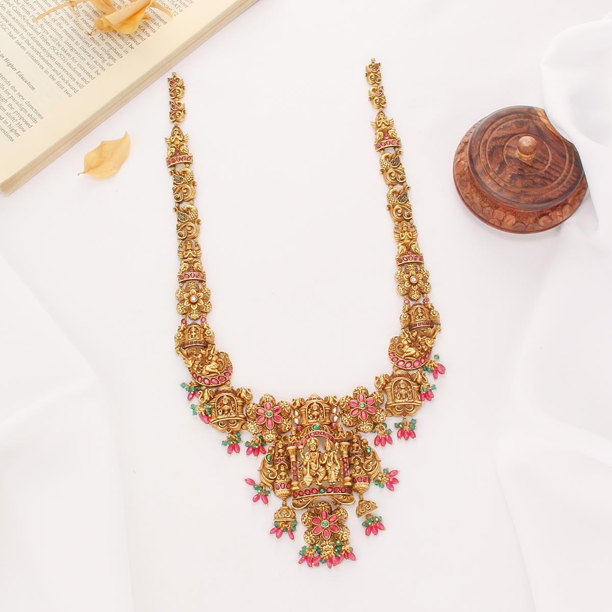 Elevate your style with this Majestic Look Nagas necklace. Crafted from 92.5 Silver and 24kt gold-plated, this set boasts exquisite semi-precious stones for a dazzling effect.
