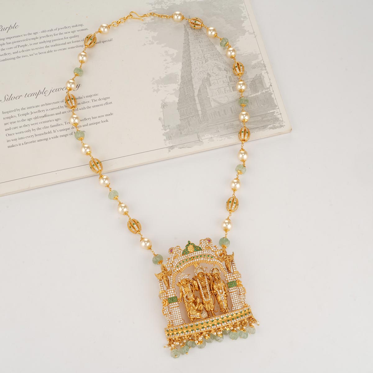 Crafted with 92.5% silver and 24 kt gold plating, this necklace features a dazzling array of semi-precious stones and beads, making it a truly stunning piece.
