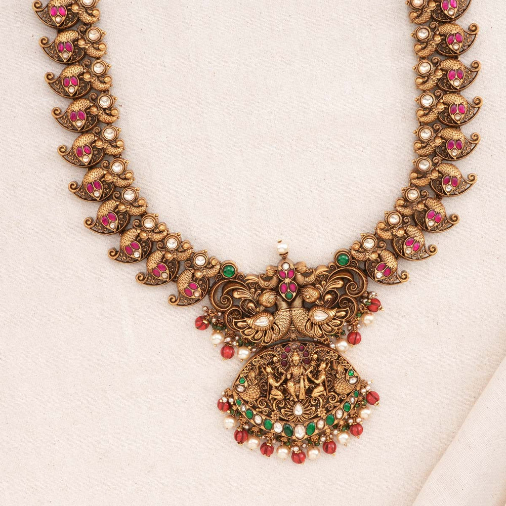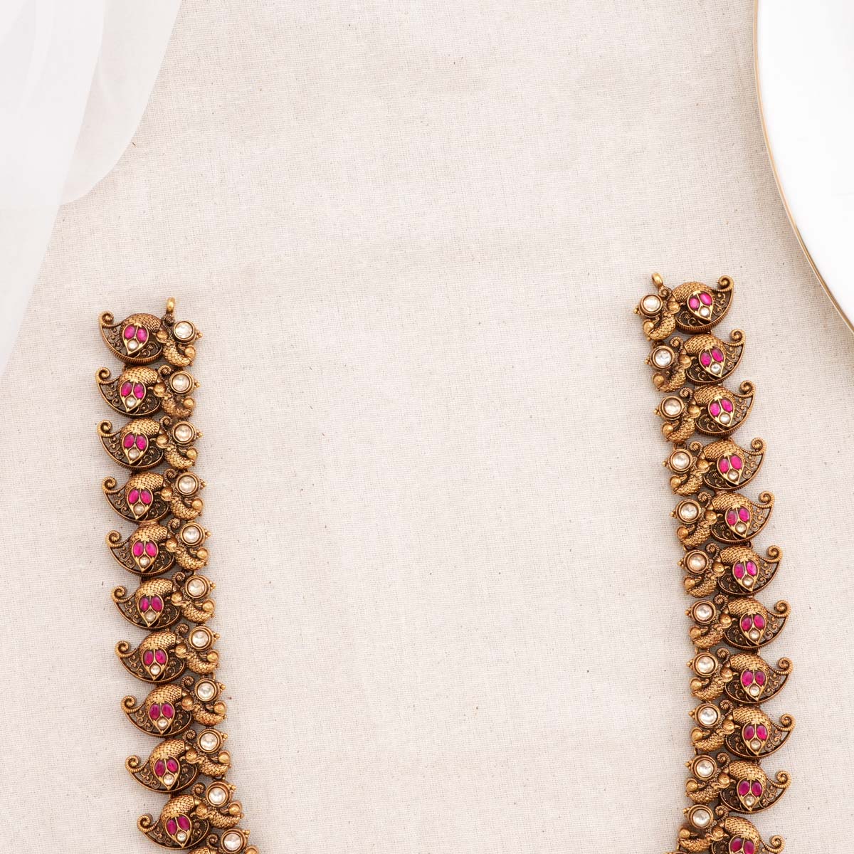 This stunning Majestic Look Nagas necklace set is made of 92.5 Silver and 24kt Gold Plated, adorned with semi-precious stones for a dazzling impact. With unmatched design and style, this set will make a magnificent statement.
