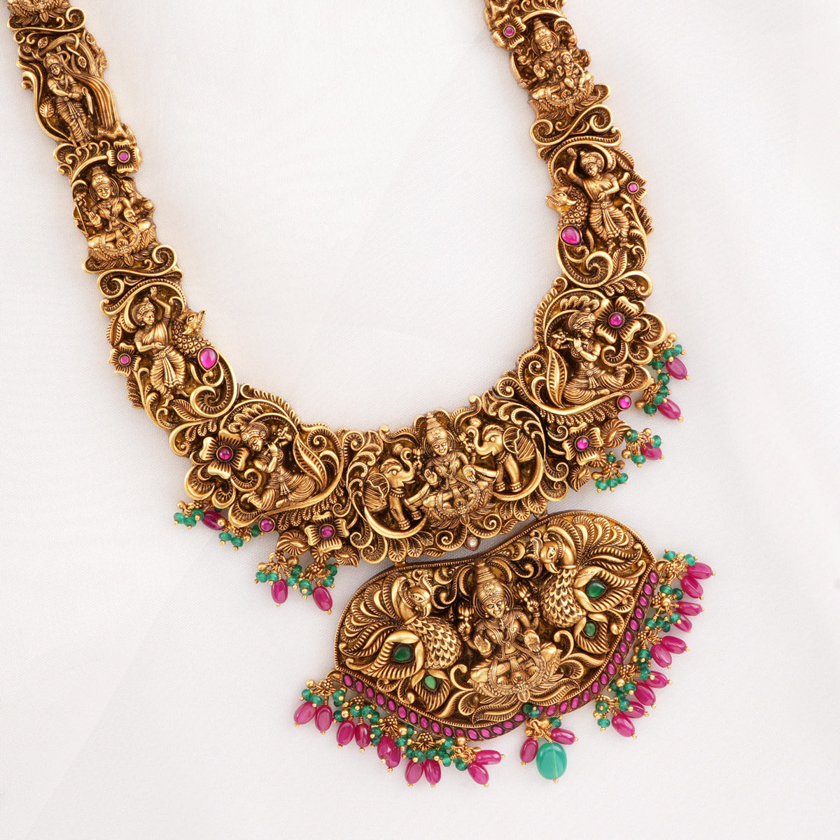 Elevate your style with this Majestic Look Nagas necklace. Crafted from 92.5 Silver and 24kt gold-plated, this set boasts exquisite semi-precious stones for a dazzling effect.