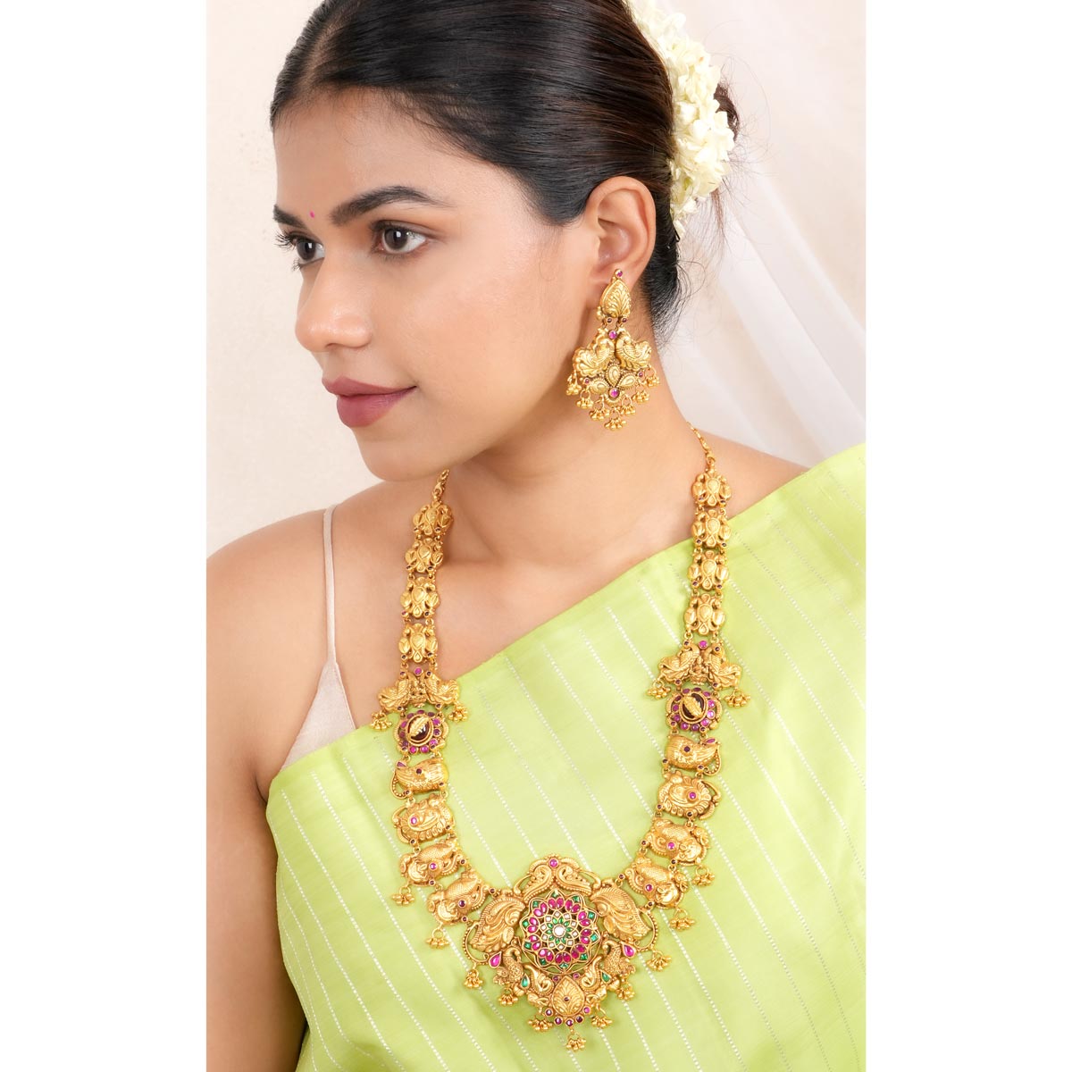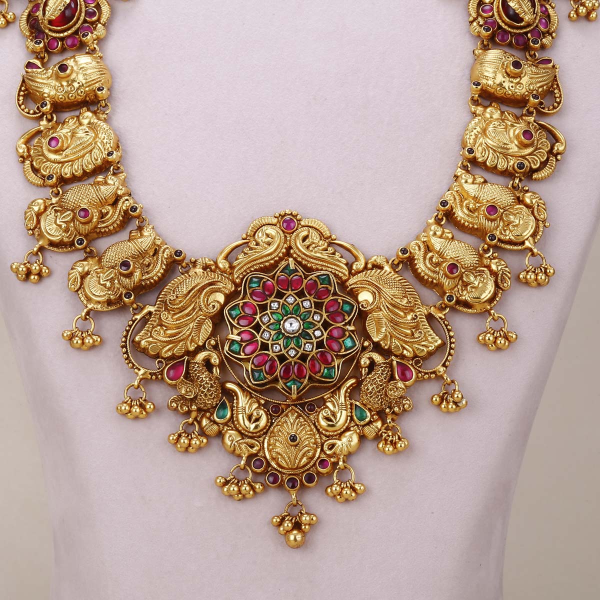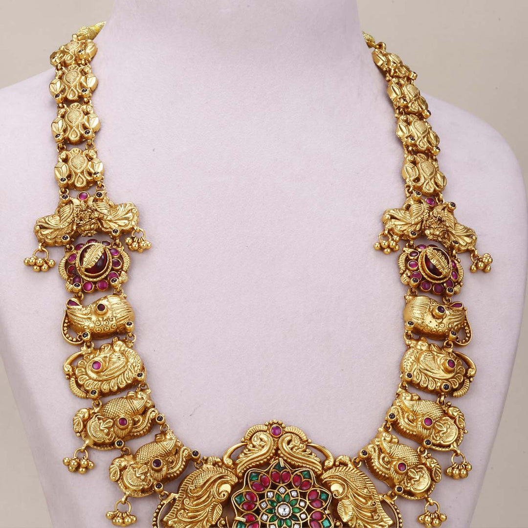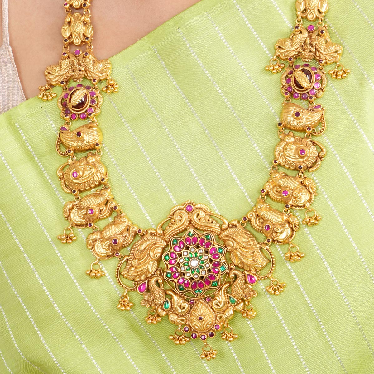 92.5 Silver, 22kt Gold Plated Necklace Studded with semi-precious stones.