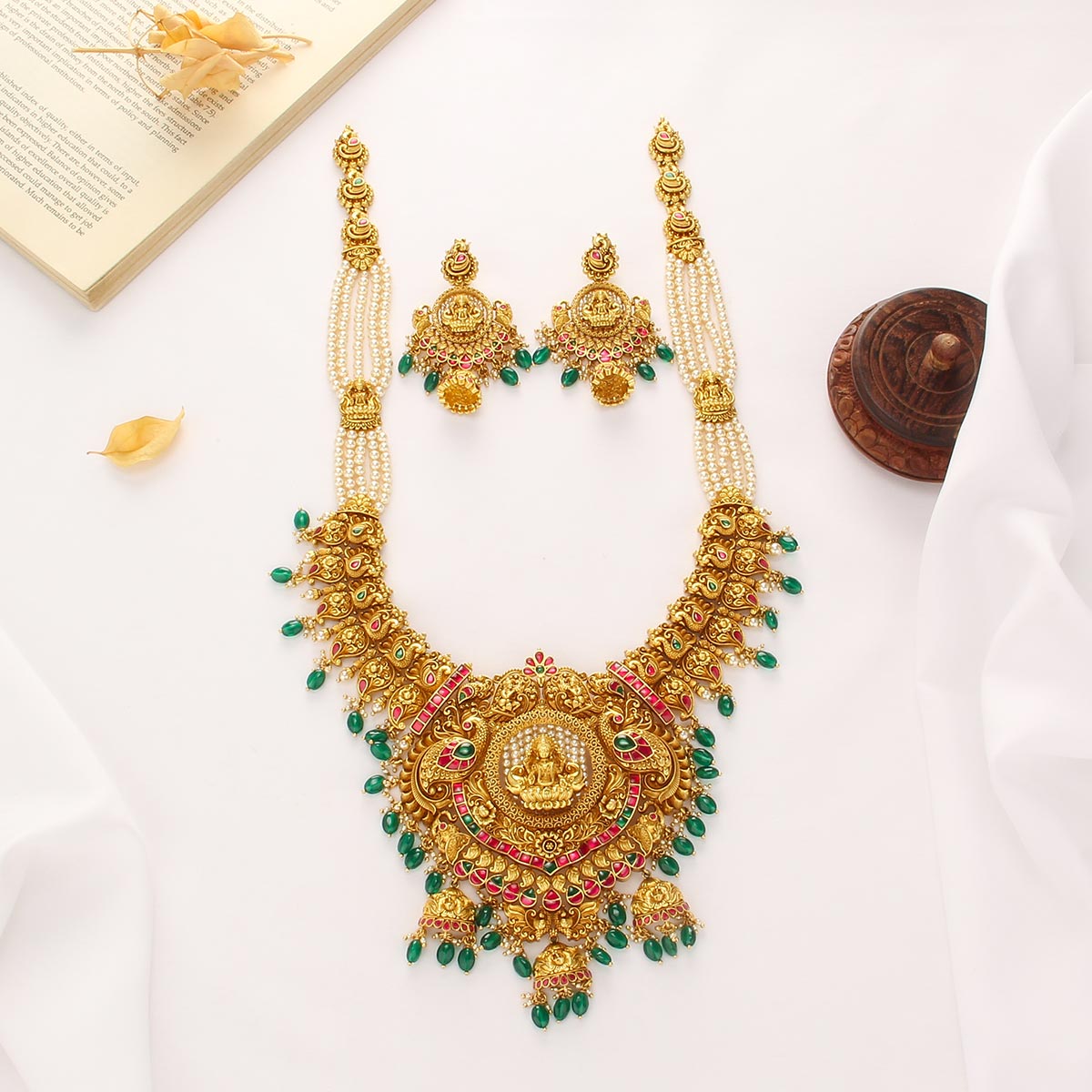Elevate your style with this Majestic Look Nagas necklace Set. Crafted from 92.5 Silver and 24kt gold-plated, this set boasts exquisite semi-precious stones for a dazzling effect.
