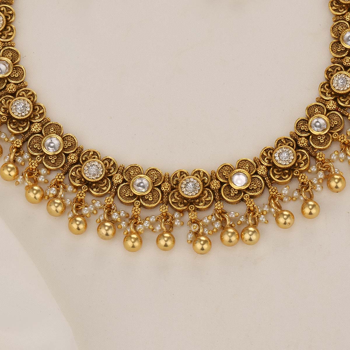 Crafted from 92.5 Silver and 24kt Gold Plated, this elegant Nagas Necklace Set features stunning semi-precious stones for a truly dazzling effect. Its unique design and exquisite style will undoubtedly make a grand impression.