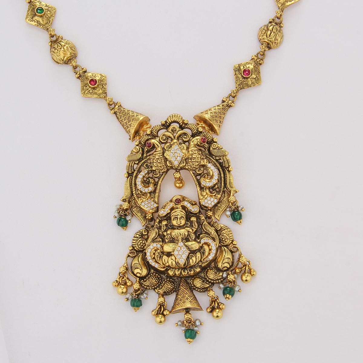 This necklace is made from 92.5 Sterling Silver, accented with semiprecious stones and adorned with a 24-karat gold plating, all on Nagas Jewellery.