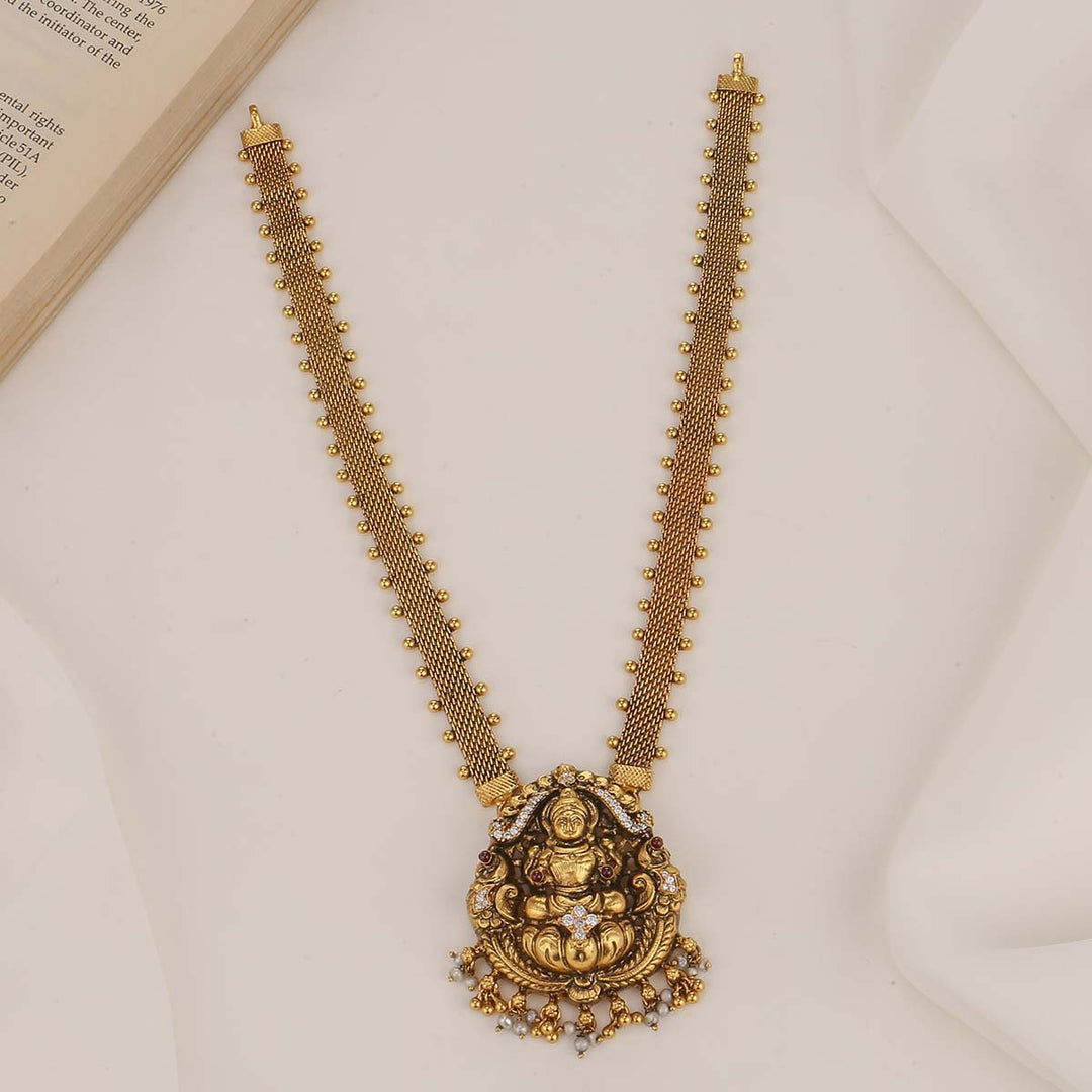 Gold Plated Antique Necklace | Gold Plated Nagas Nakshi Silver Necklace | Gold Plated Kassu Malai