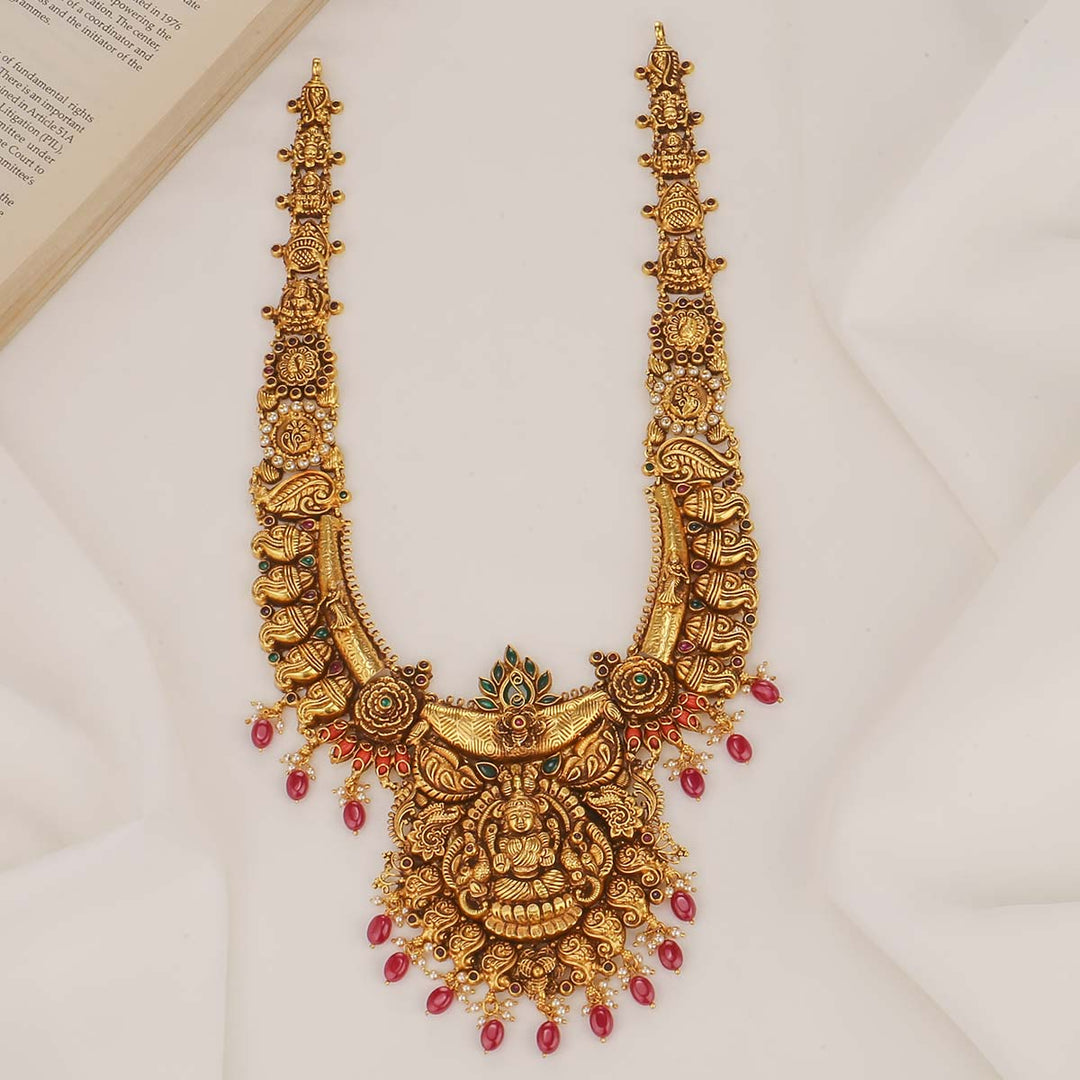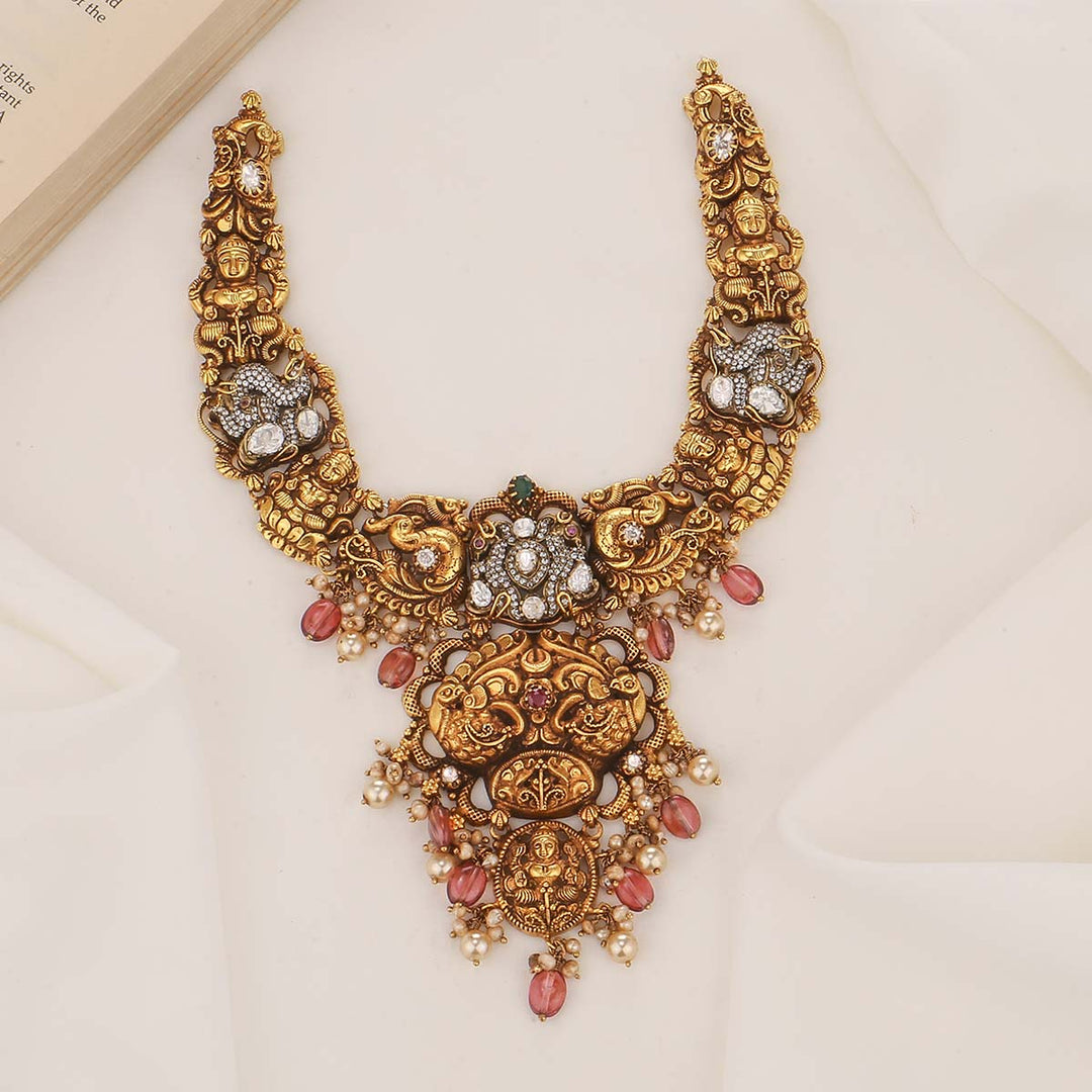 Gold Plated Antique Necklace | Gold Plated Nagas Nakshi Silver Necklace | Gold Plated Kassu Malai