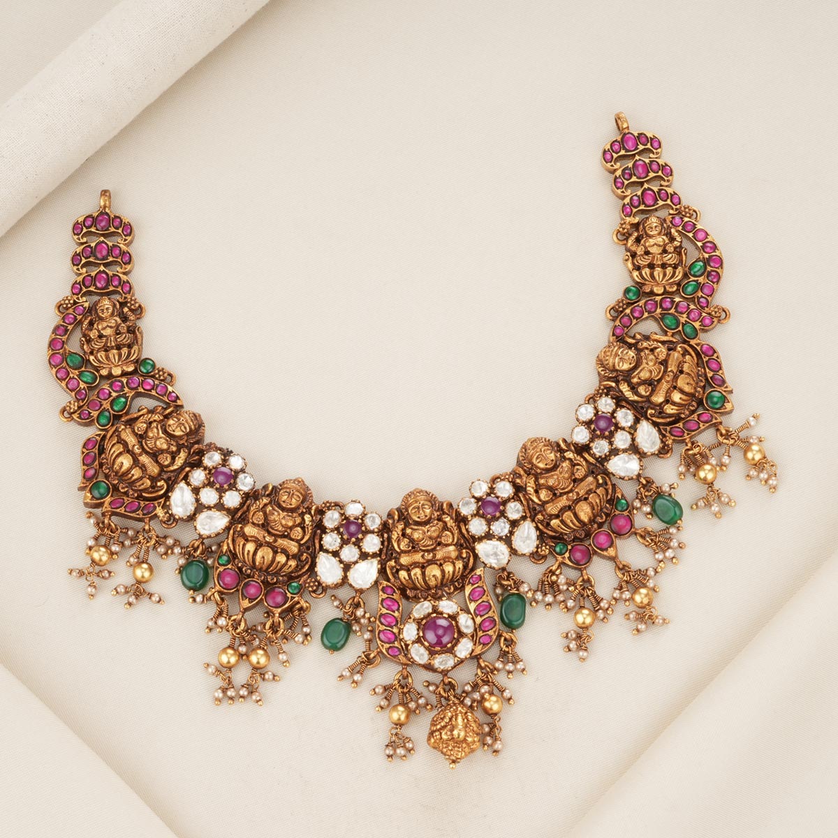 Handcrafted pure 92.5 silver gold plated deep nagas jewelry. This is a fusion of deep nagas and Kundan's work. It takes about 100 days to make this one-of-a-kind masterpiece. We are proud to say that we are the first brand in India to launch this collection.
