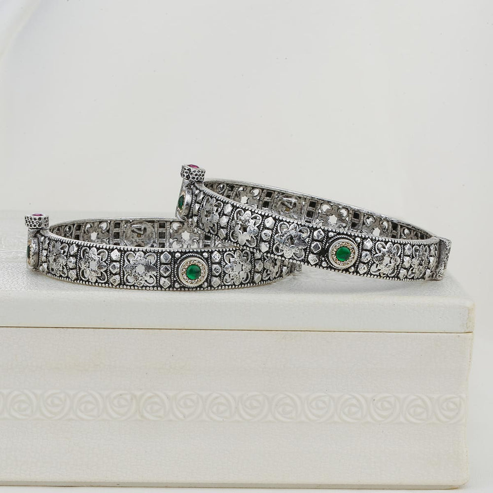 Silver Glow Oxidised Pair Bangles