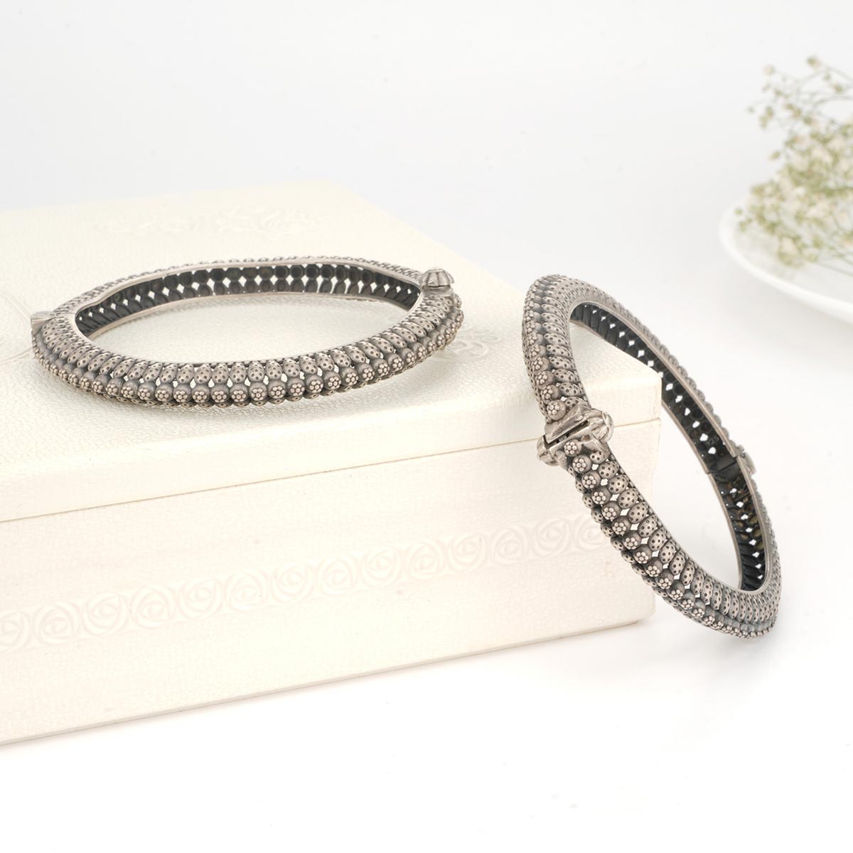 92.5 Silver, Oxidised Bangles Studded with semi Precious Stones.
