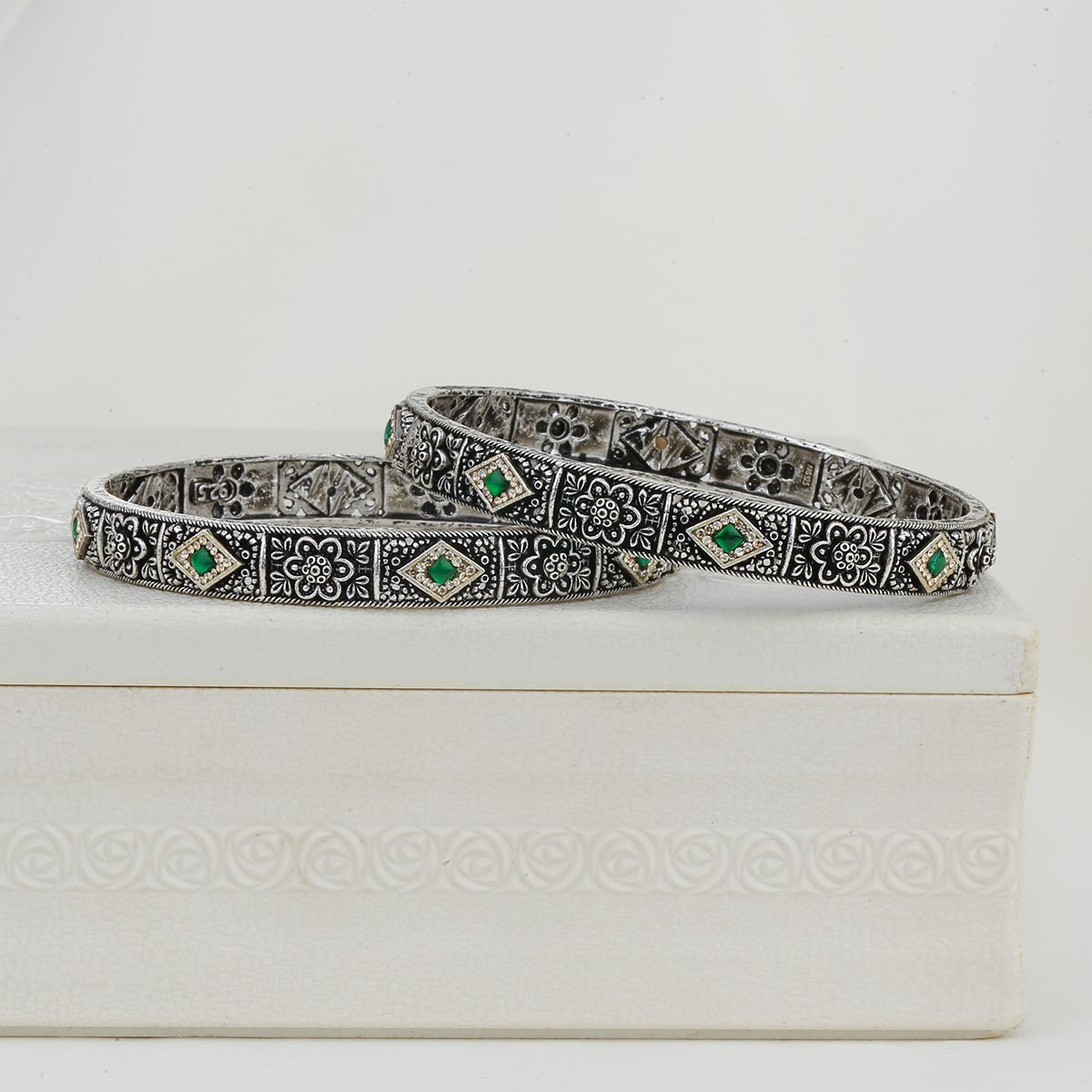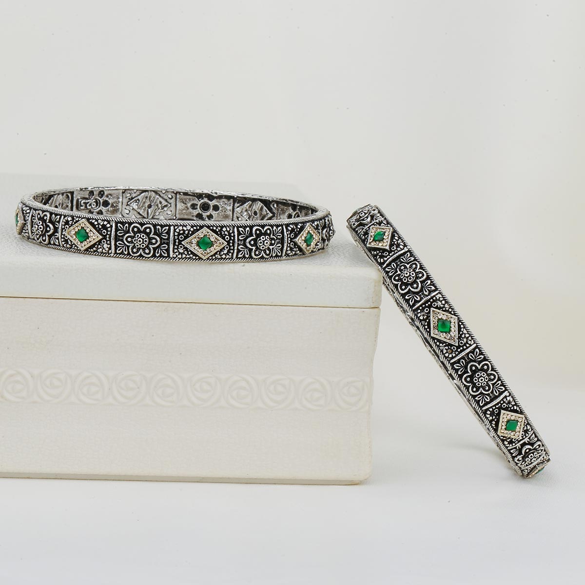 92.5 Silver, Oxidised Bangles Studded with semi Precious Stones.