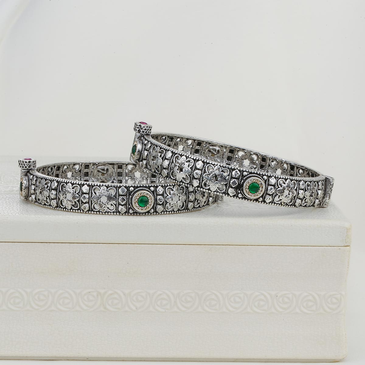 92.5 Silver, Oxidised Bangles Studded with semi Precious Stones.