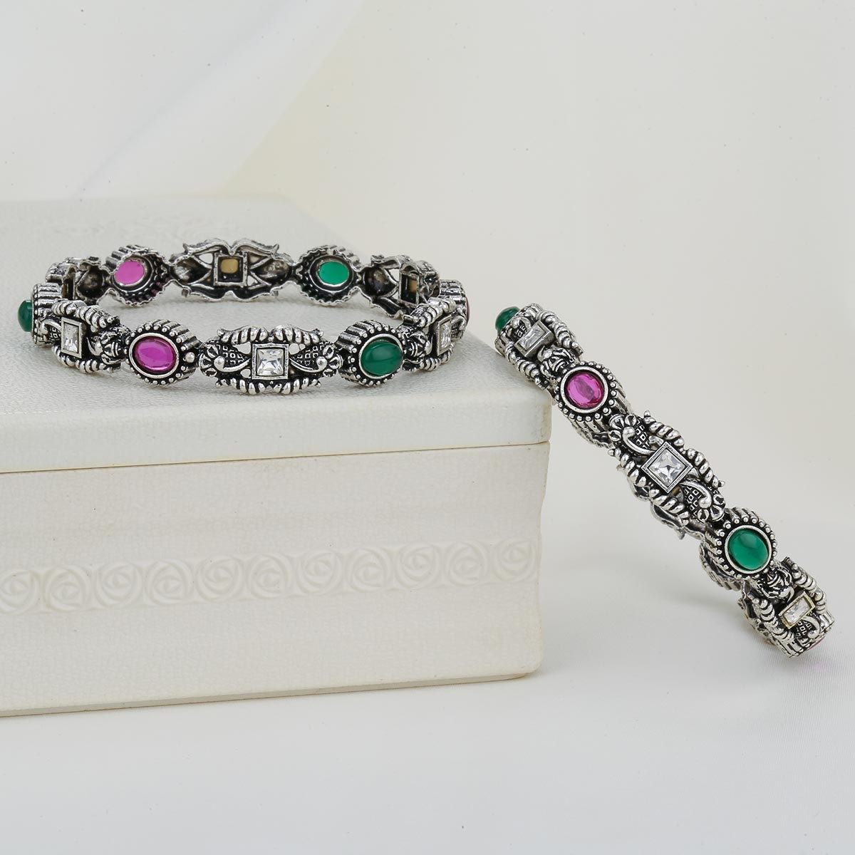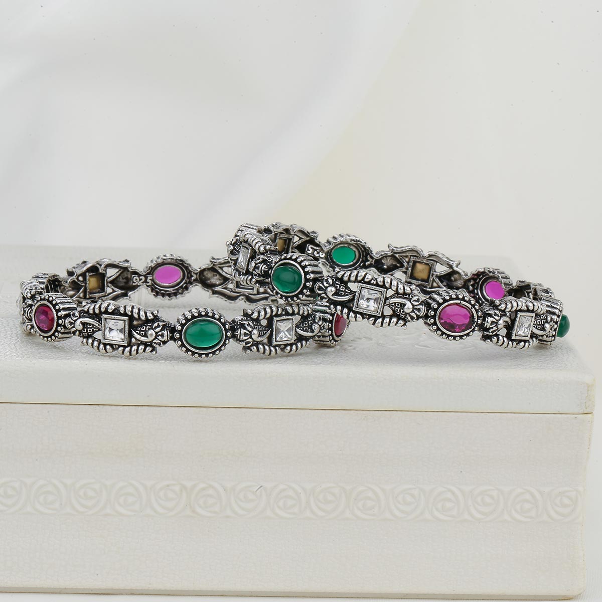 92.5 Silver, Oxidised Bangles Studded with semi Precious Stones.