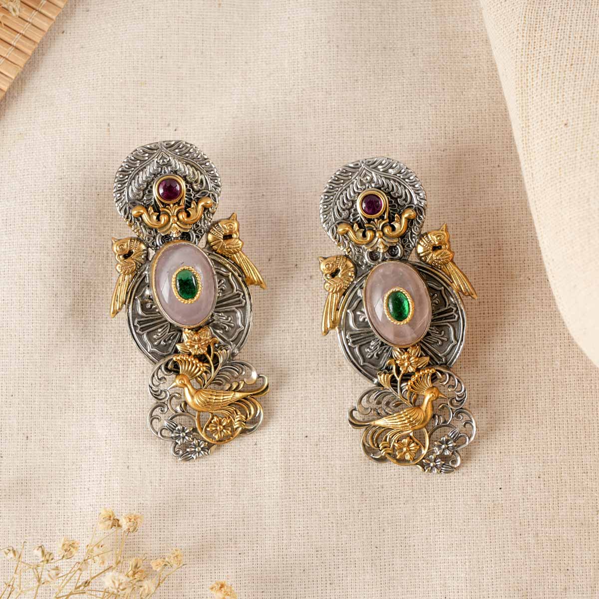 Crafted from 92.5% silver, these dual-tone long earrings exude a stylish and sophisticated look.