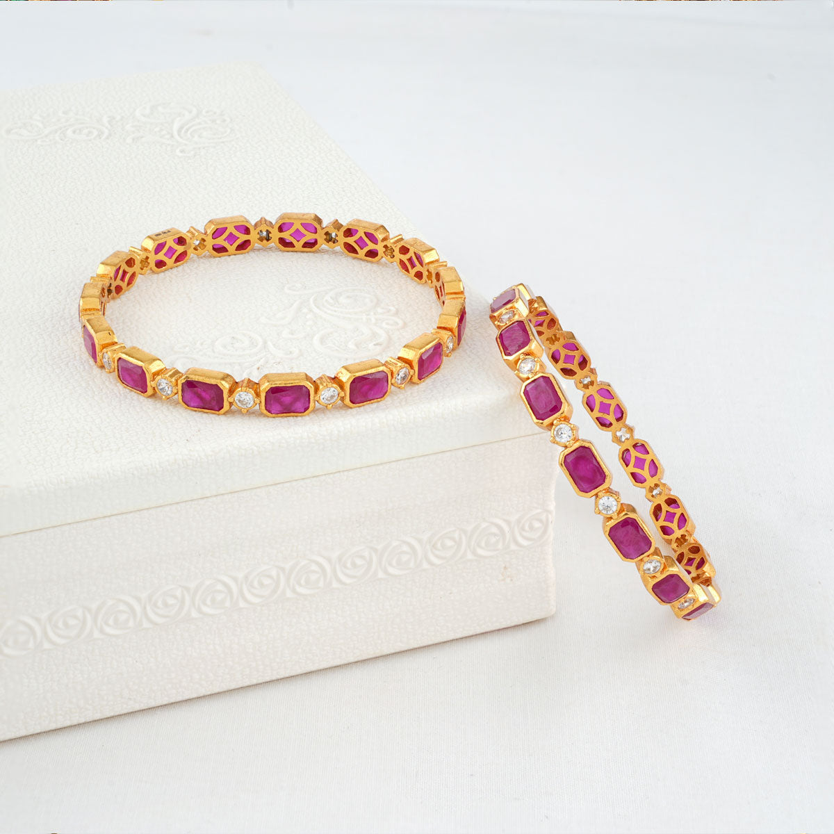 This 92.5 Silver, 24 kt gold-plated stylish Bangles is studded with semi-precious stones to make a stunning statement. Perfect for both formal and casual occasions.