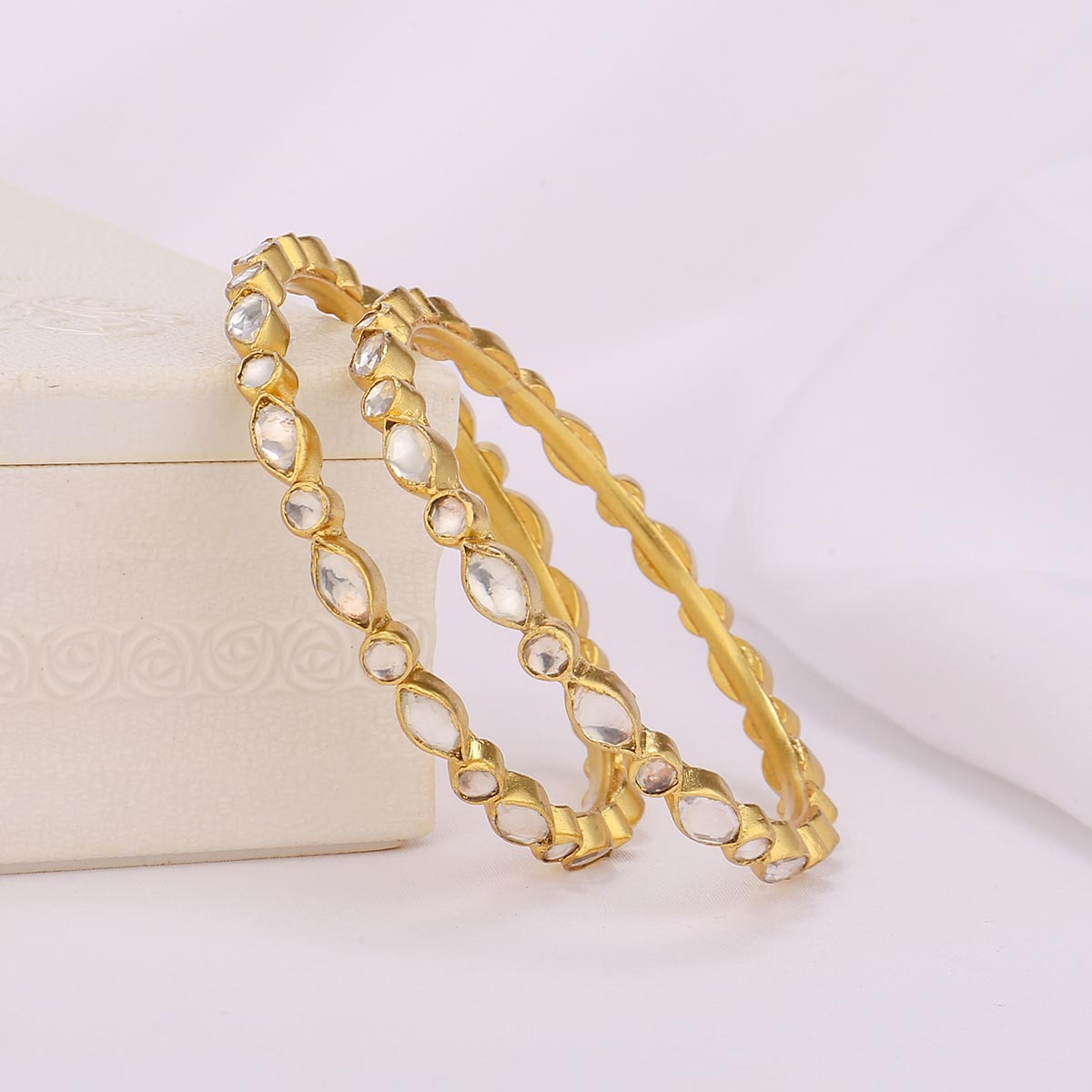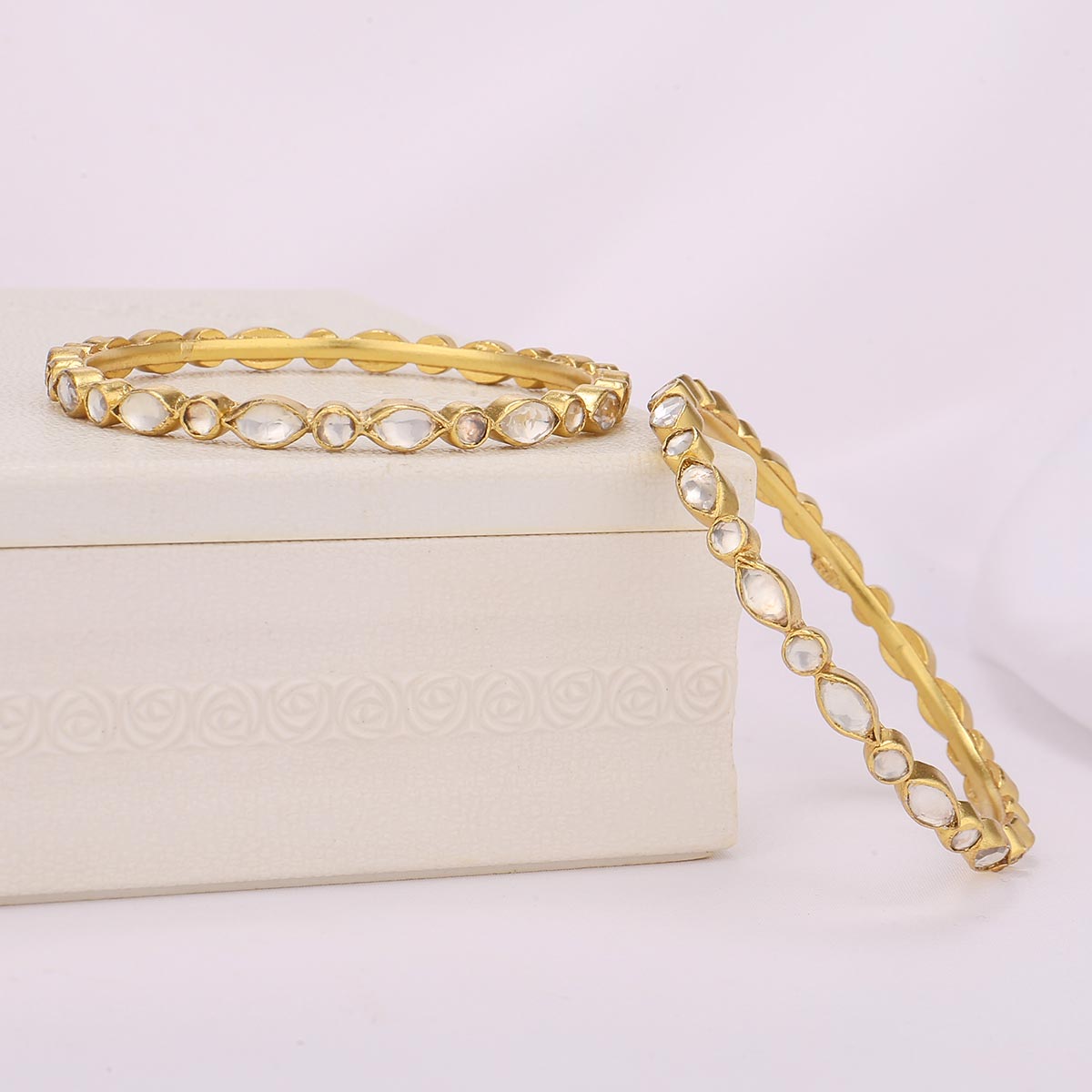 This 92.5 Silver, 24 kt Gold-Plated Bangle is adorned with Semi-precious Kundan Stones for a luxurious aesthetic.
