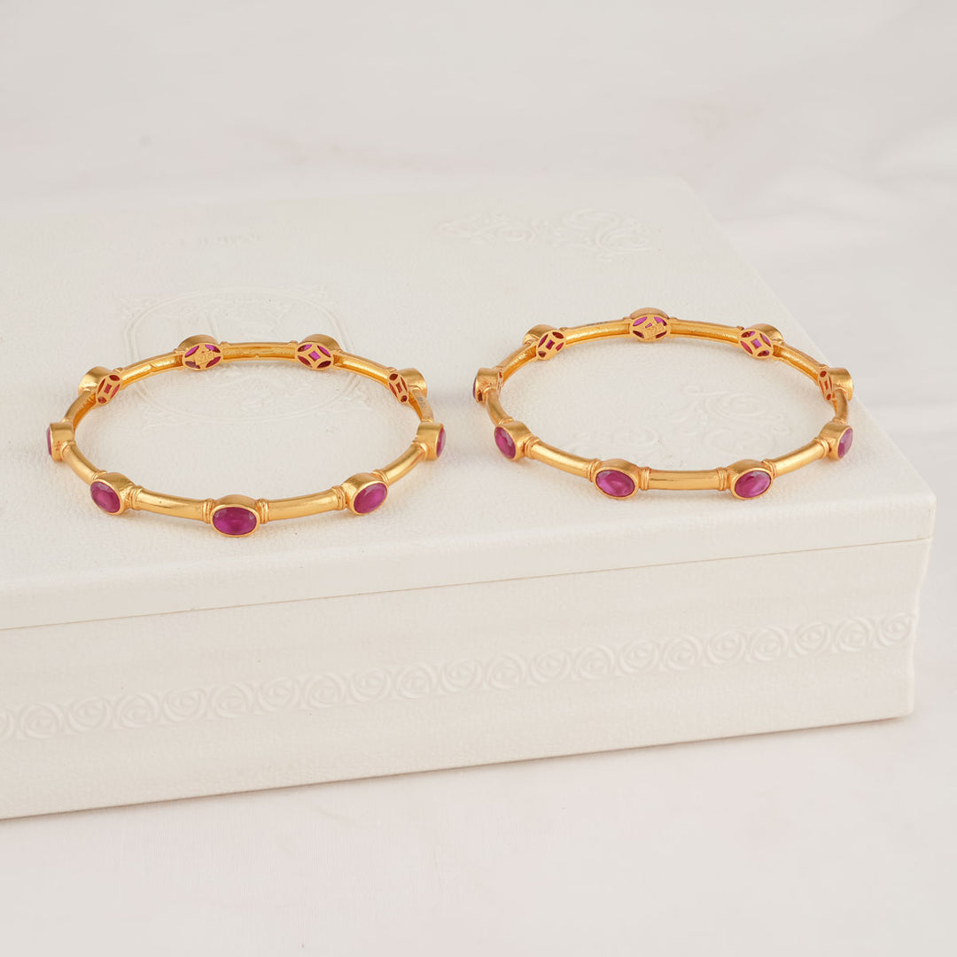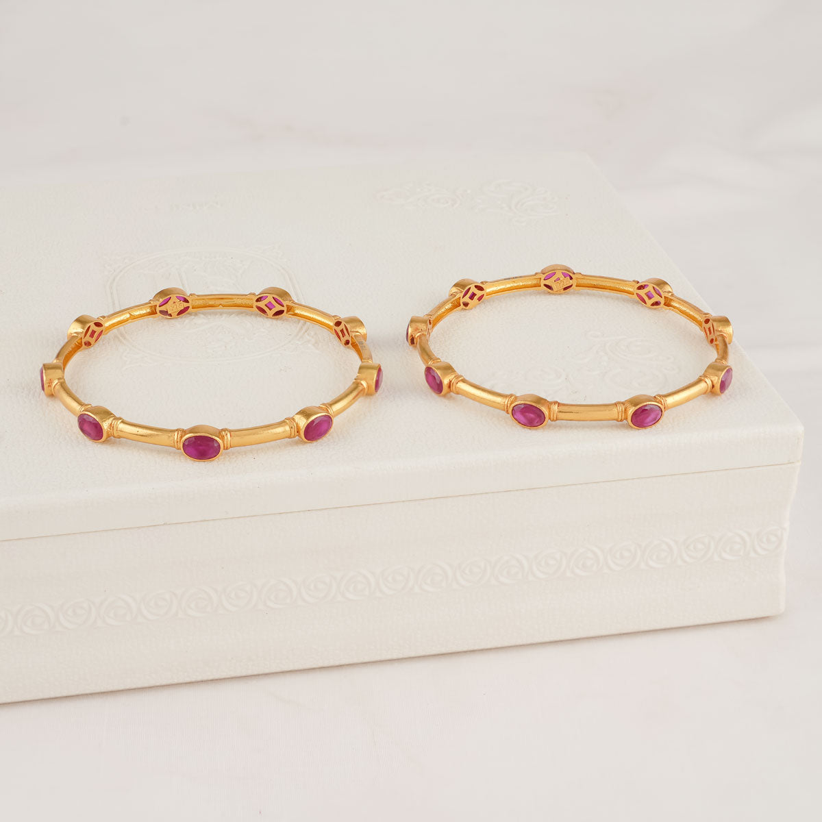 This 92.5 Silver, 24 kt gold-plated stylish Bangles is studded with semi-precious stones to make a stunning statement. Perfect for both formal and casual occasions.