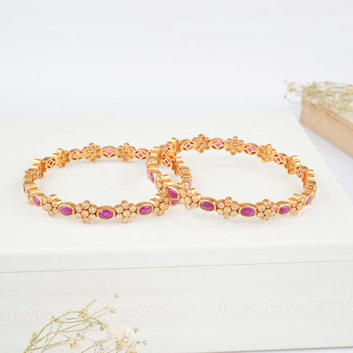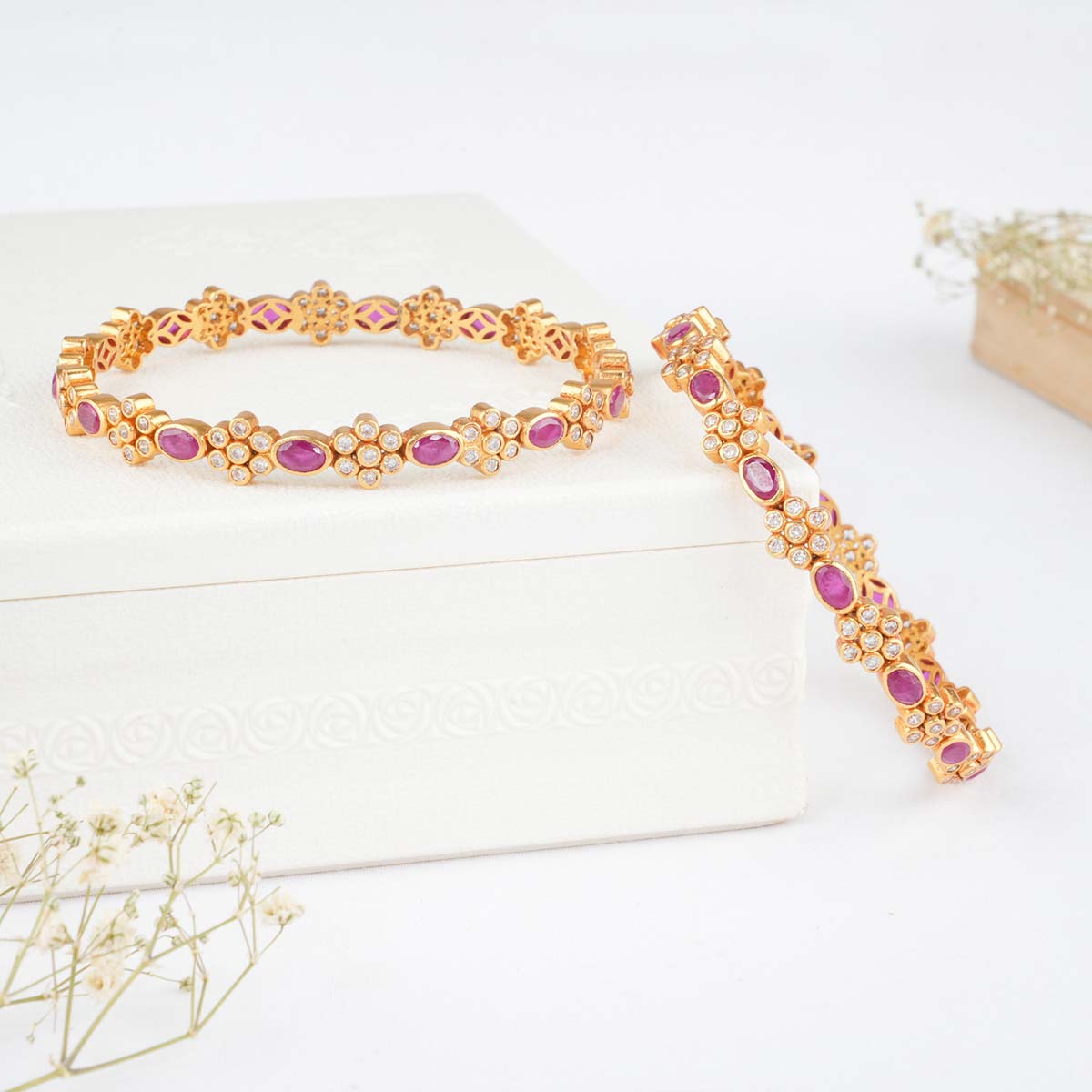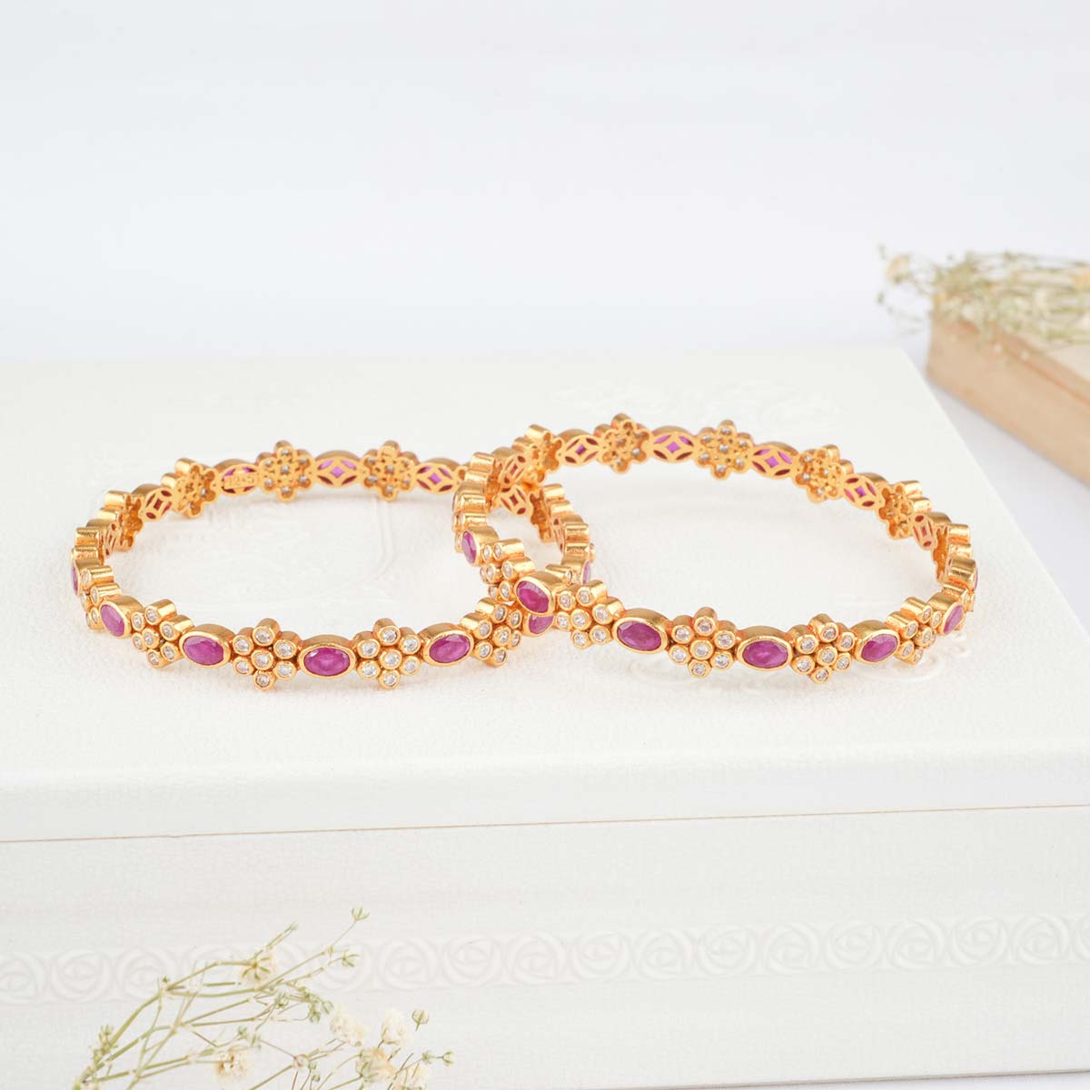 This 92.5 Silver, 24 kt gold-plated stylish Bangles is studded with semi-precious stones to make a stunning statement. Perfect for both formal and casual occasions.