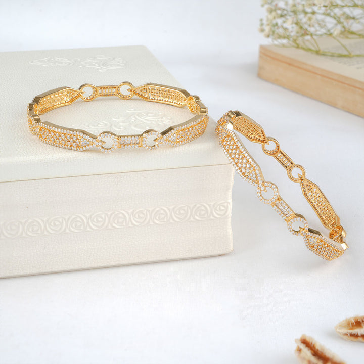 This 92.5 Silver, 24 kt gold-plated stylish Bangles is studded with semi-precious stones to make a stunning statement. Perfect for both formal and casual occasions.