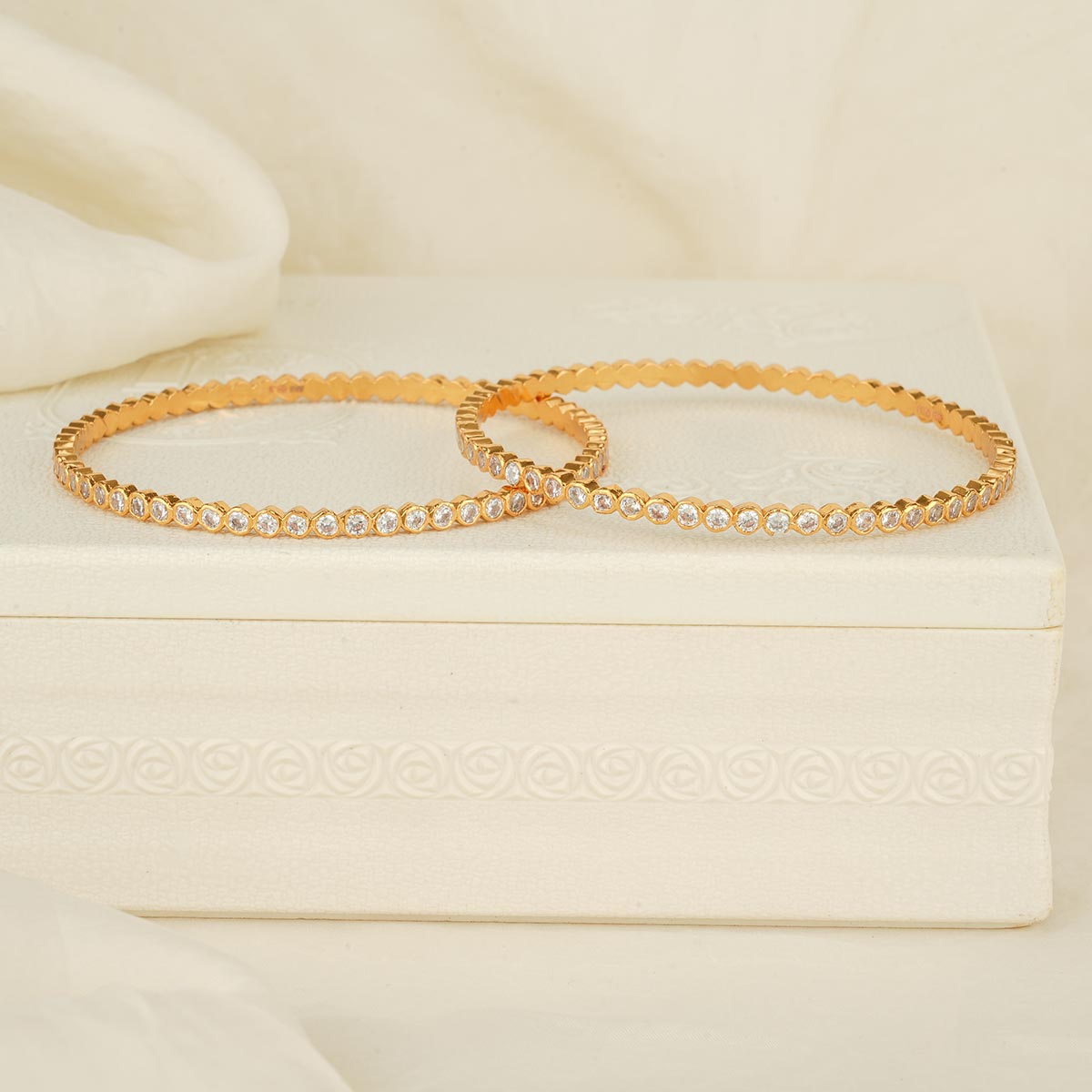 This 92.5 Silver, 24 kt gold-plated stylish Bangles is studded with semi-precious stones to make a stunning statement. Perfect for both formal and casual occasions.