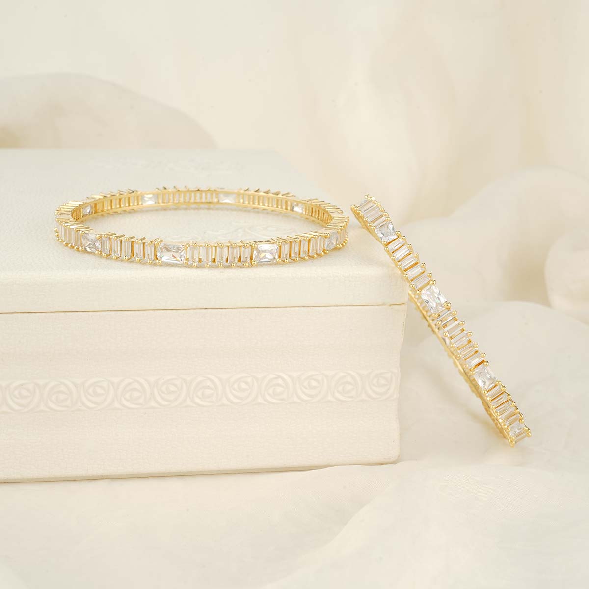 This 92.5 Silver, 24 kt gold-plated stylish Bangles is studded with semi-precious stones to make a stunning statement. Perfect for both formal and casual occasions.
