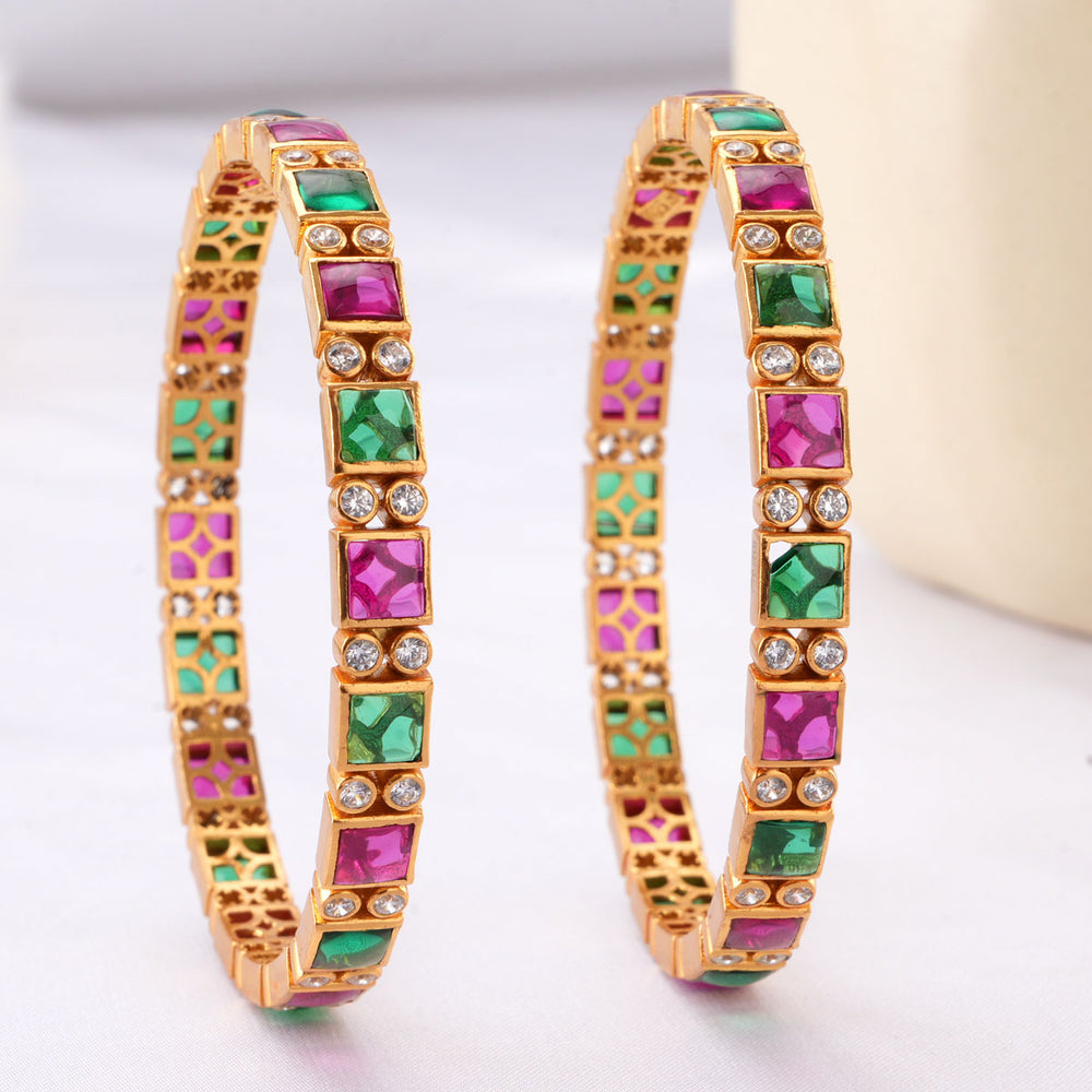 Gold Plated Silver Bangles Online | Buy Oxidised Silver Kundan Bangles