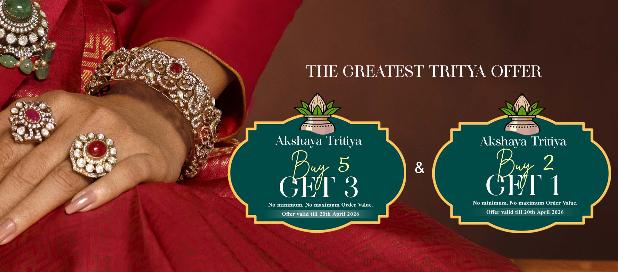 🥳"The Greatest Tritiya Offer is Live! Buy 5 Get 3 Free & Buy 2 Get 1 Free. Limited time only – April 1st to April 20th."✨