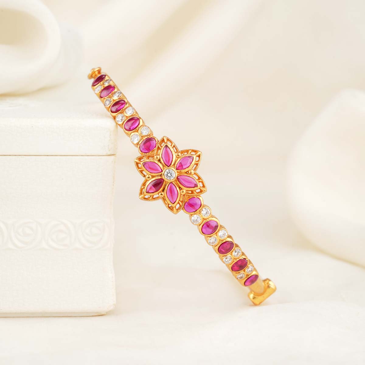92.5 silver,24kt gold plated Bracelet studded with semi-precious stones.