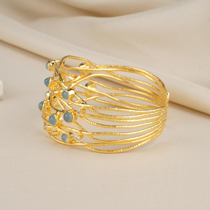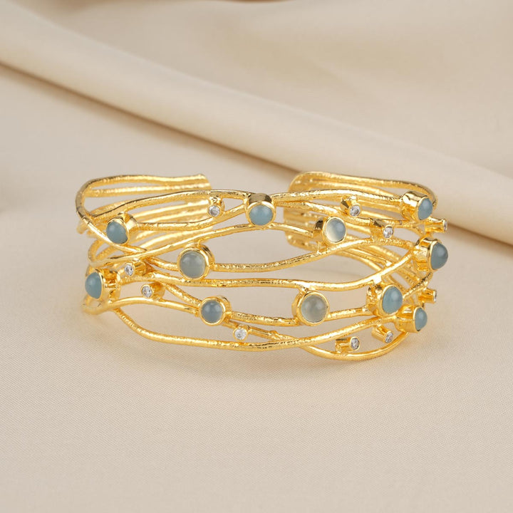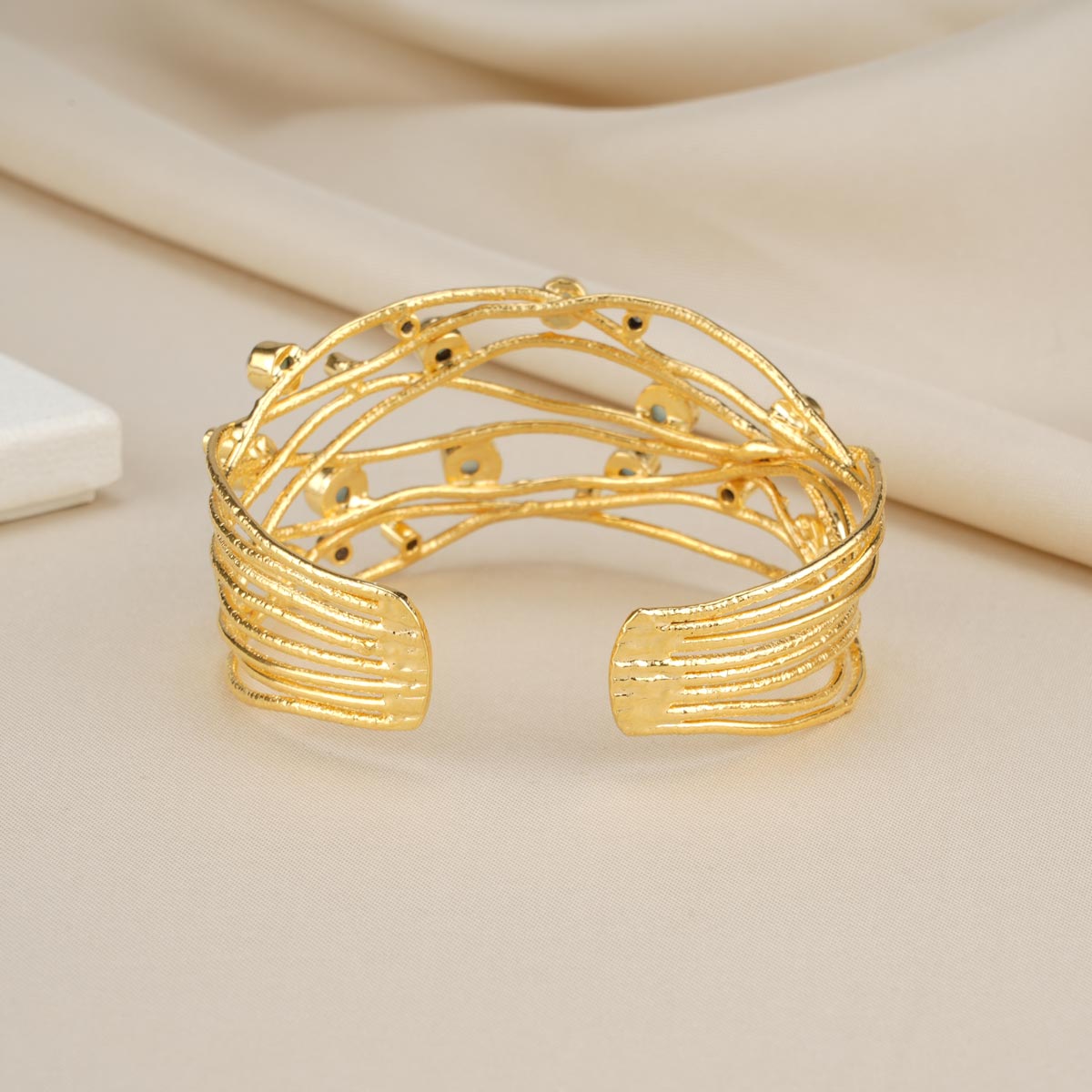 92.5 Silver, 24Kt gold Plated, Studded With Semi Precious Gemstones Adjustable Bracelets.