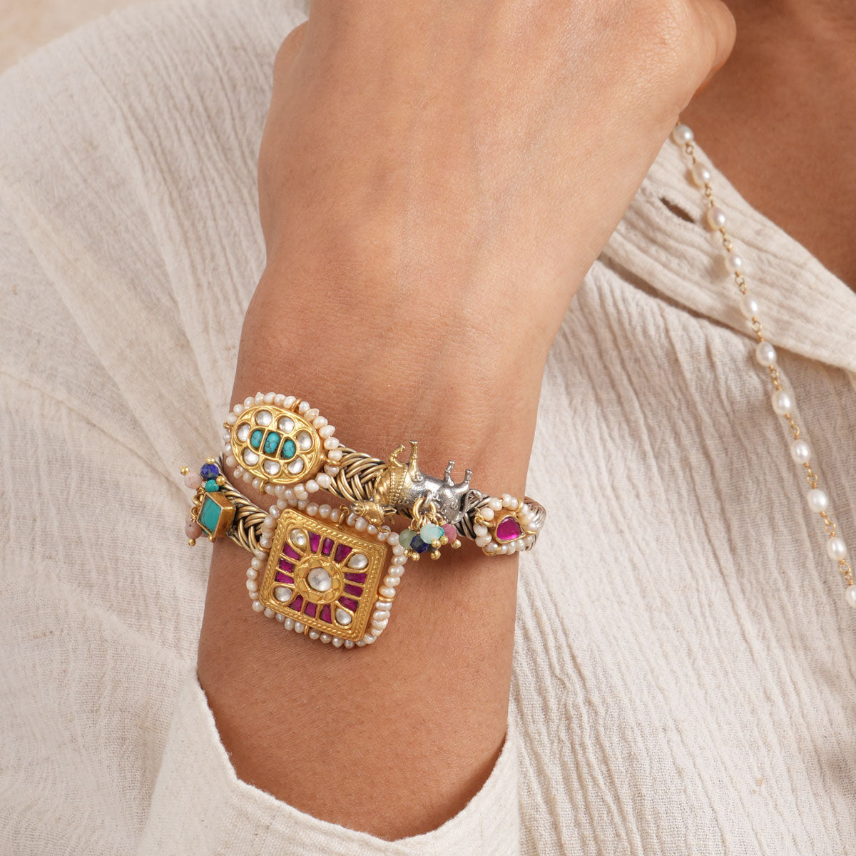 The bracelet's dual-tone design, made of 92.5% silver, adds a unique and fashionable touch.