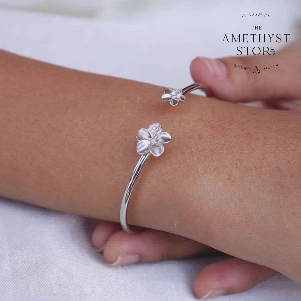 This stunning Nemesia Bracelet features 92.5 Silver and is intricately studded with semi-precious stones. The timeless design and luxurious finish make it an ideal accessory for special occasions.
