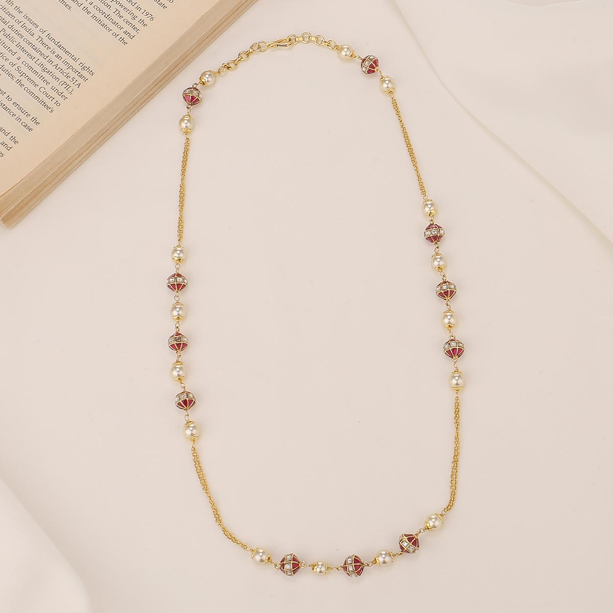 This Chain is perfect for special occasions, featuring 92.5 silver gold plating and a Kundan pendant for a timeless look. Its premium materials will last for years and make a great addition to any jewellery collection.