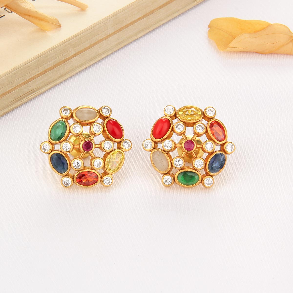 This 92.5 Silver, 24 kt gold-plated stylish Earring is studded with semi-precious stones to make a stunning statement. Perfect for both formal and casual occasions.