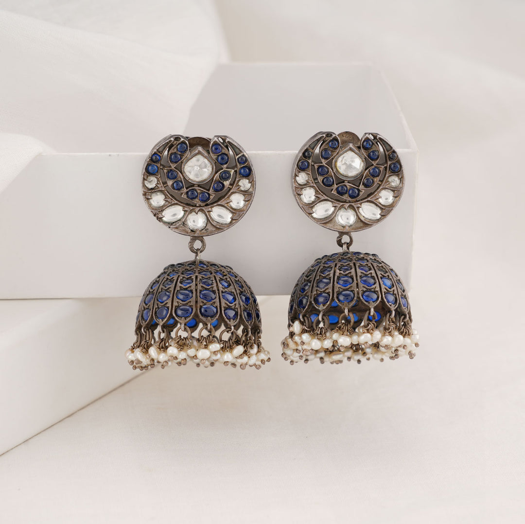 92.5 silver, Oxidised Earrings studded with semi-precious stones.