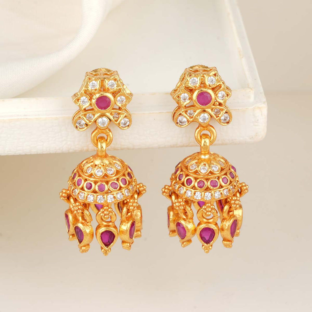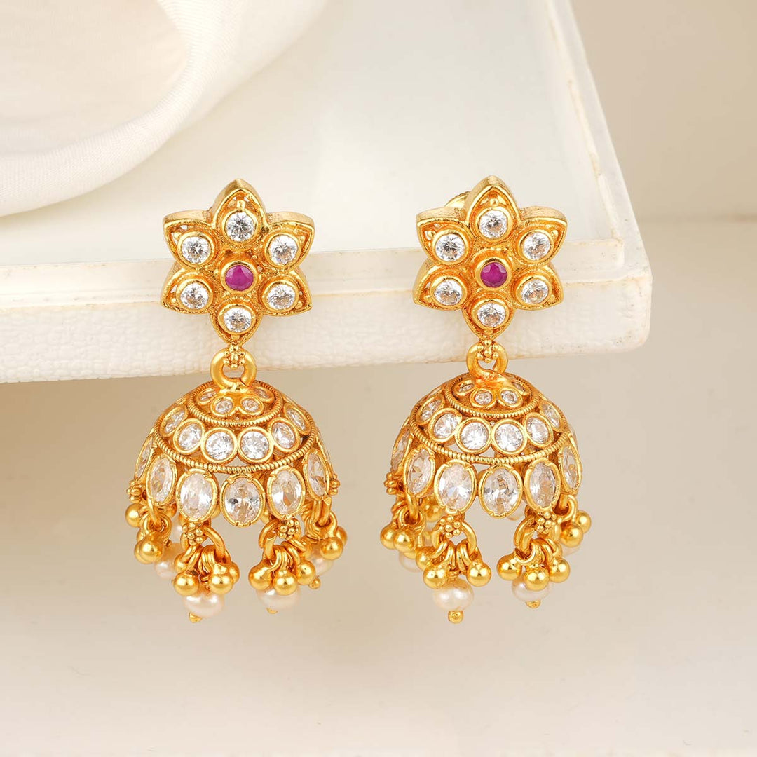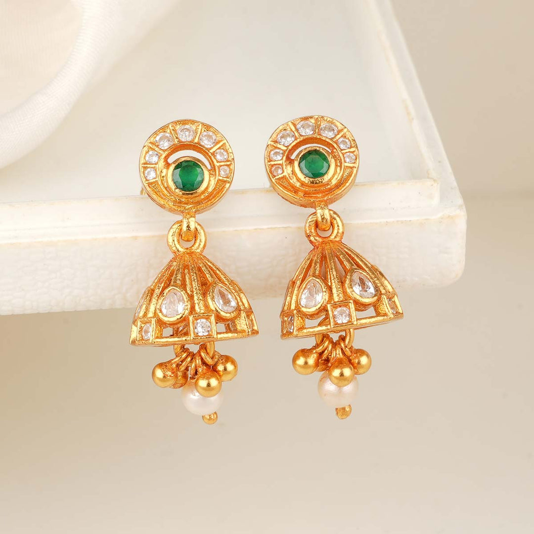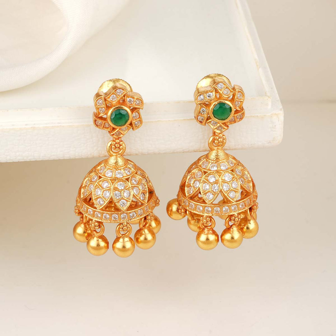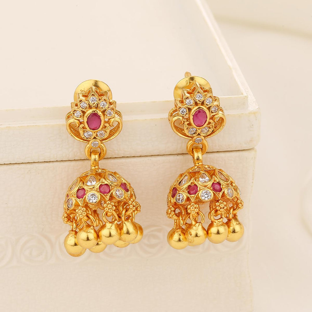 Gold Plated Silver Jhumkas Earrings | Gold Plated Silver Stone Jhumkas Online