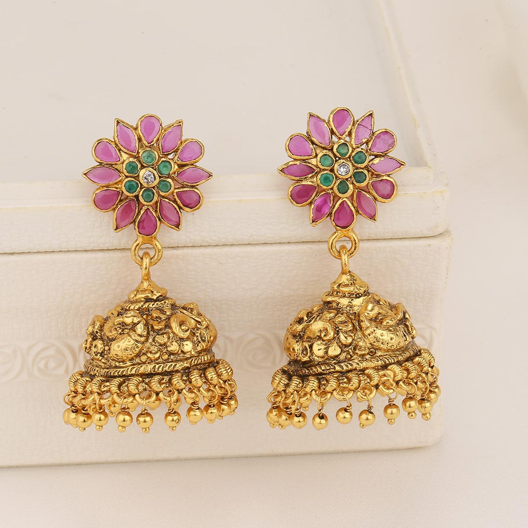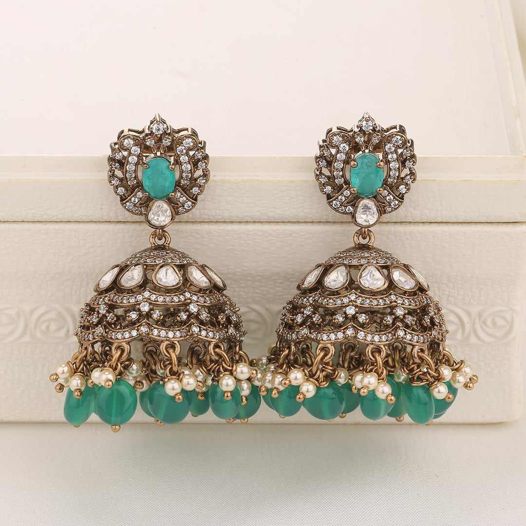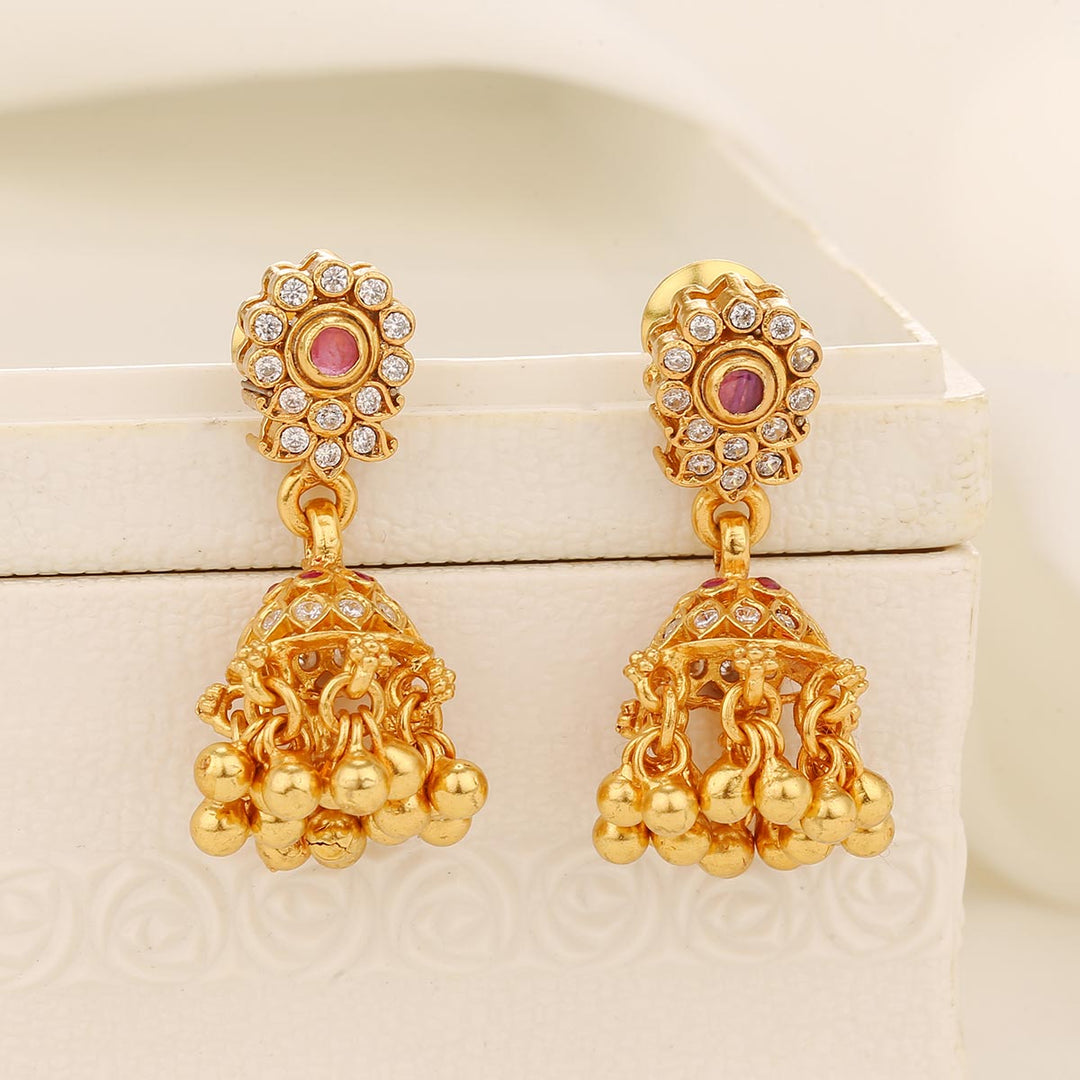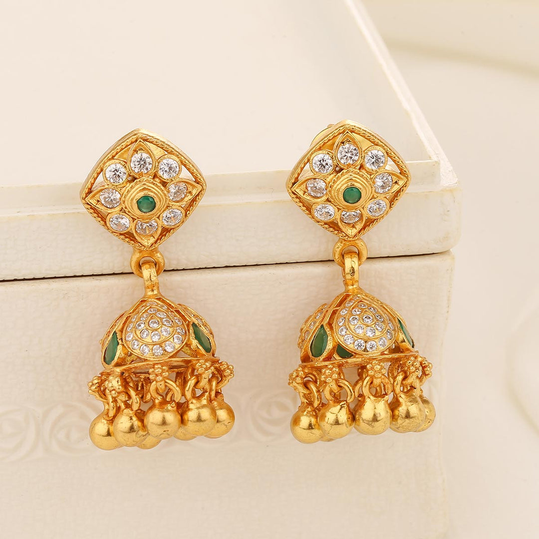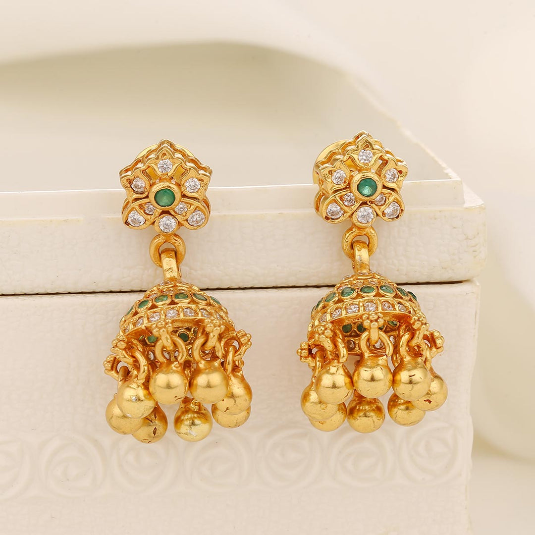 Gold Plated Silver Jhumkas Earrings | Gold Plated Silver Stone Jhumkas Online