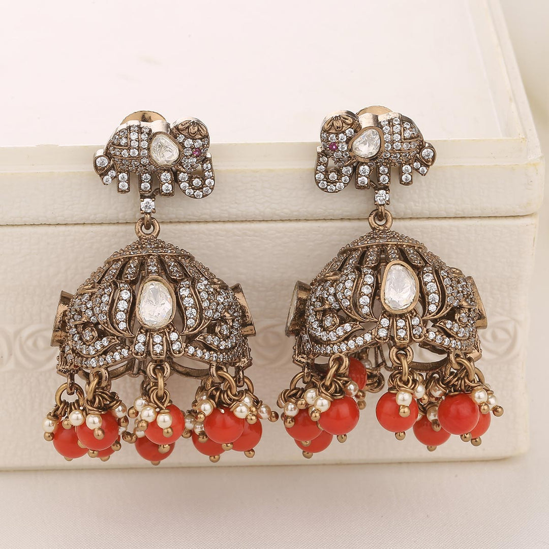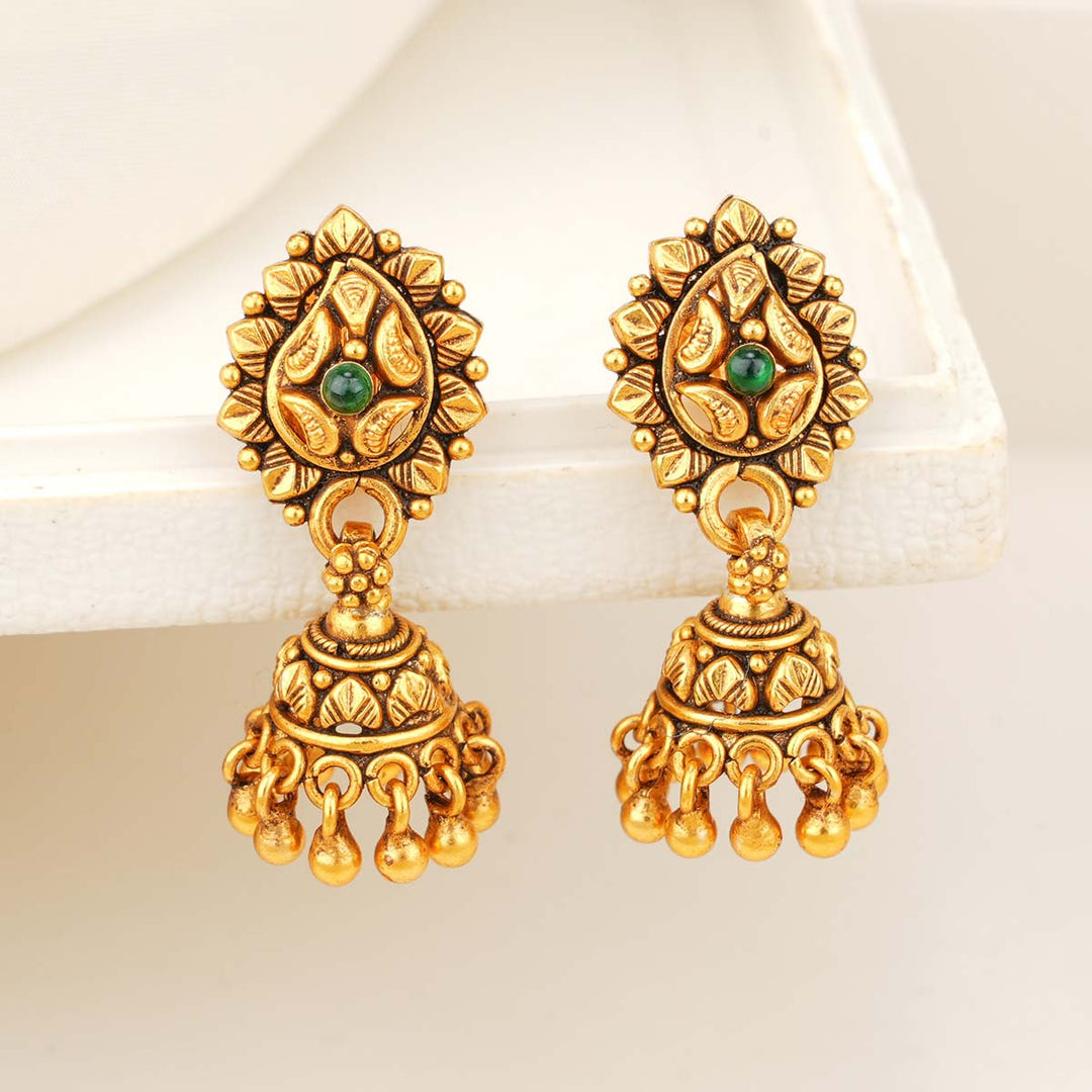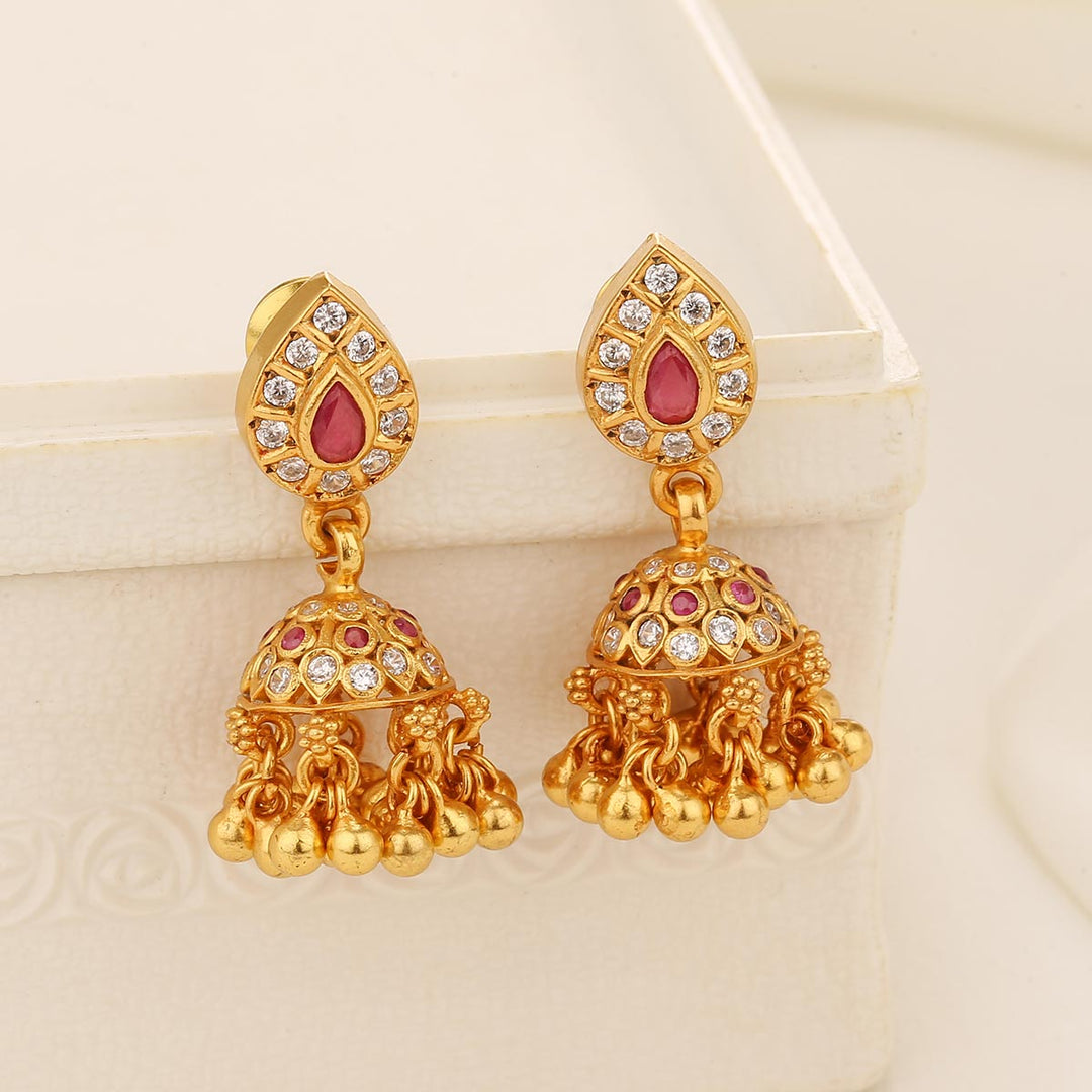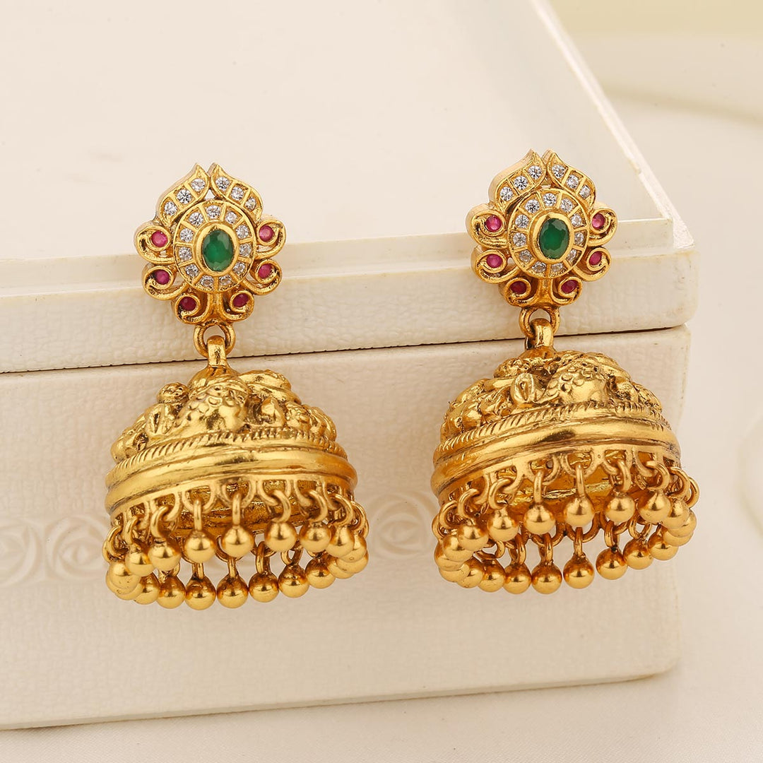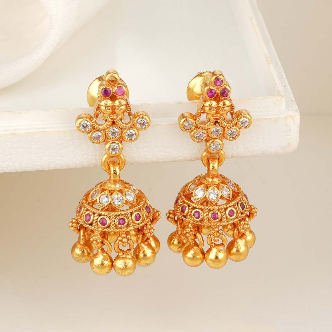 Gold Plated Silver Jhumkas Earrings | Gold Plated Silver Stone Jhumkas Online