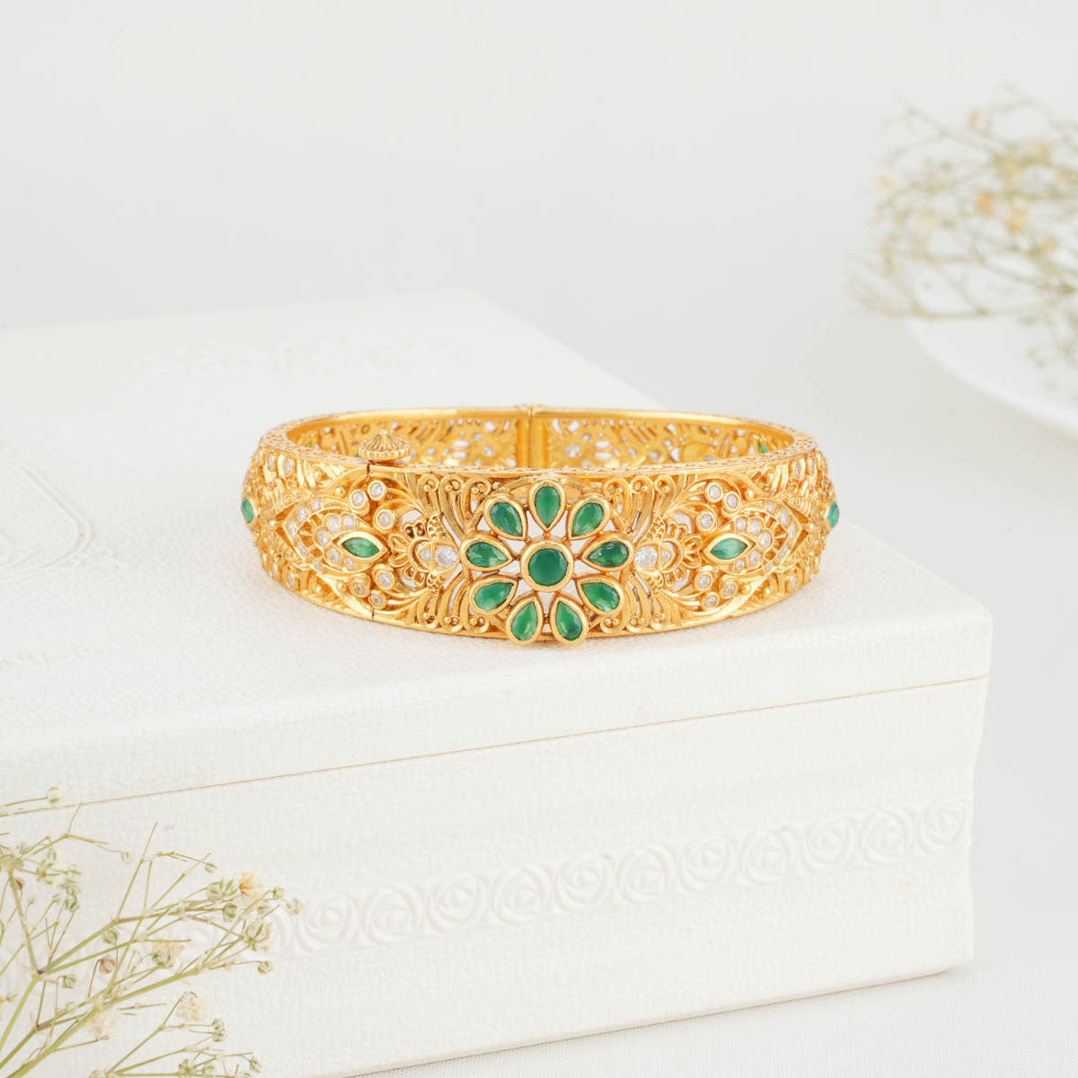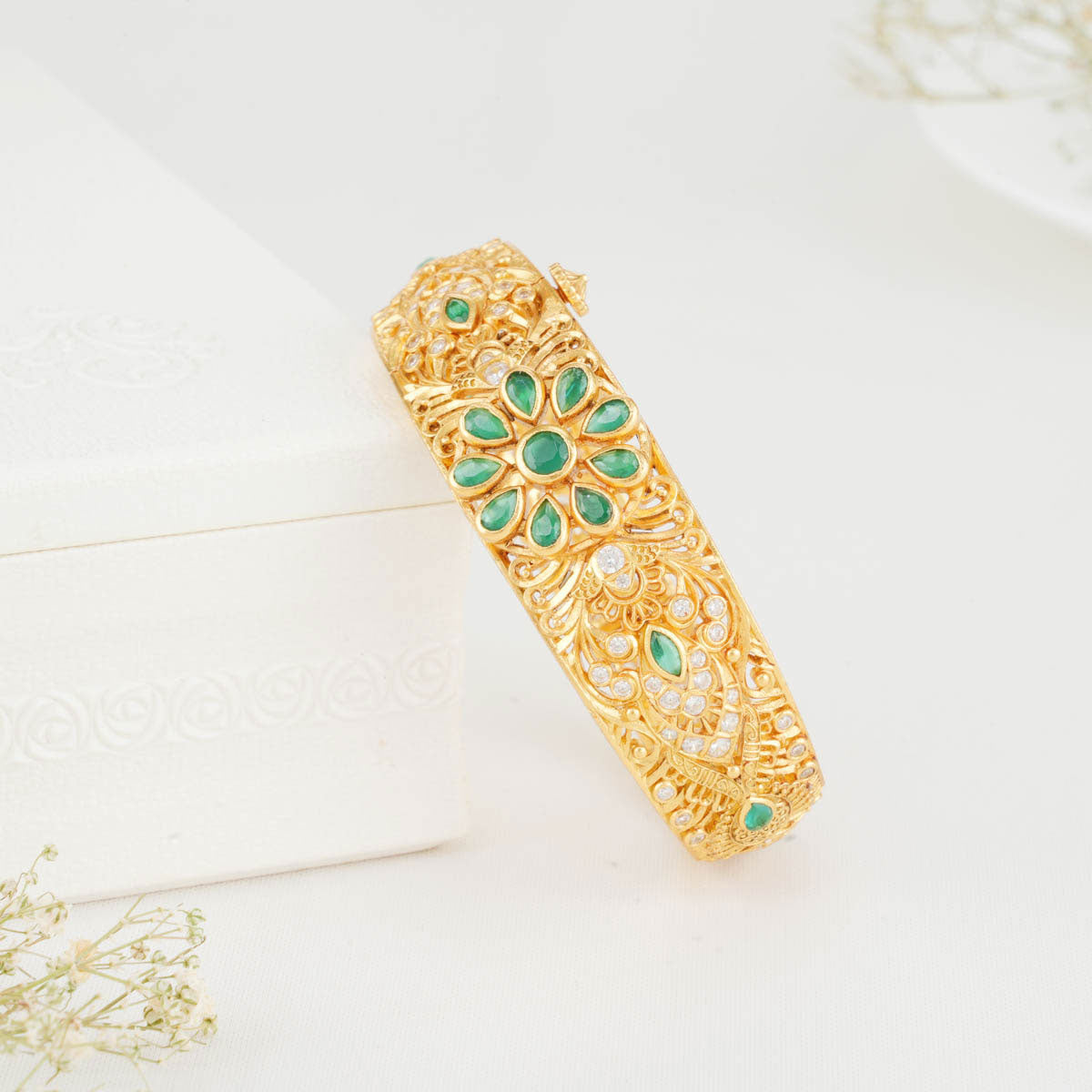 92.5 silver,24kt gold plated Bracelet studded with semi-precious stones.