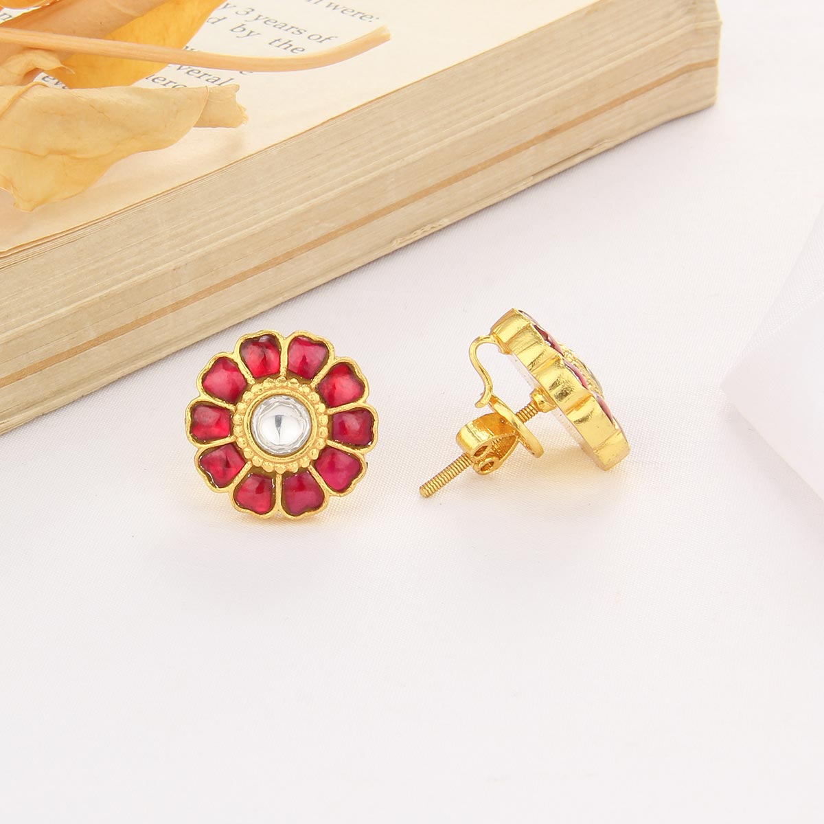 This 92.5 Silver, 24 kt Gold-Plated Earring is adorned with Semi-precious Kundan Stones for a luxurious aesthetic.