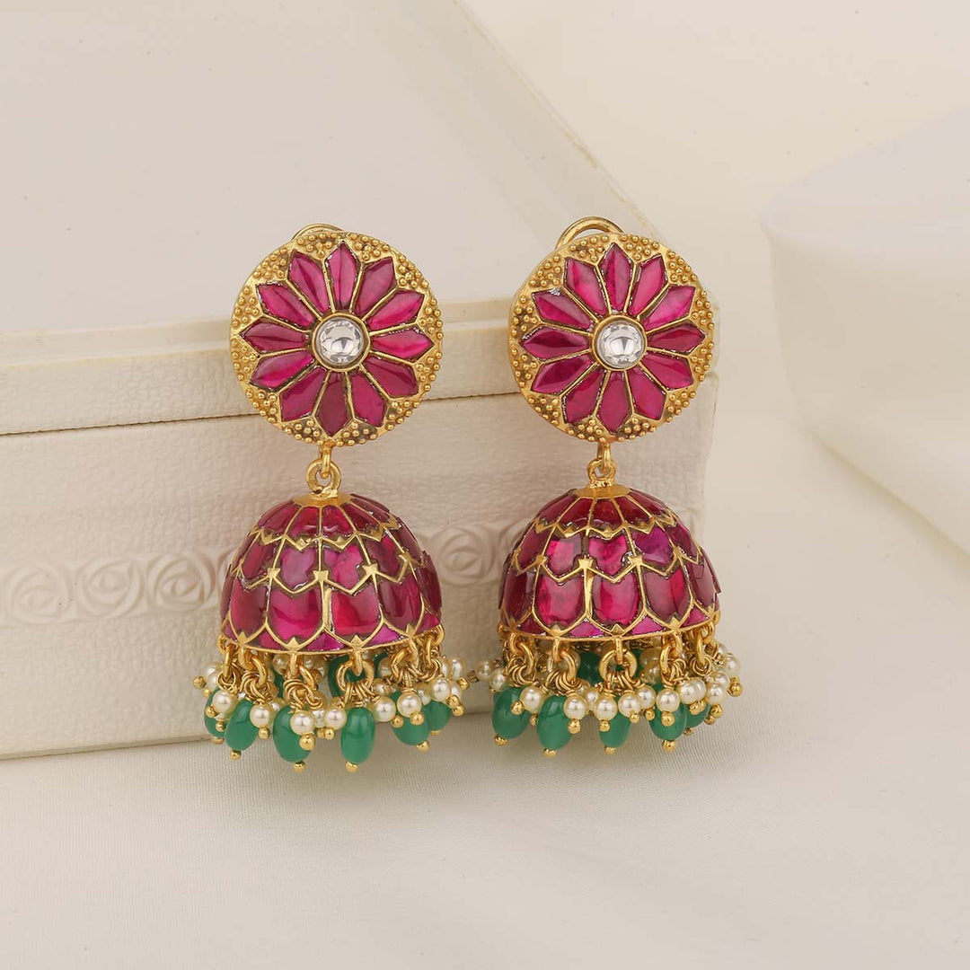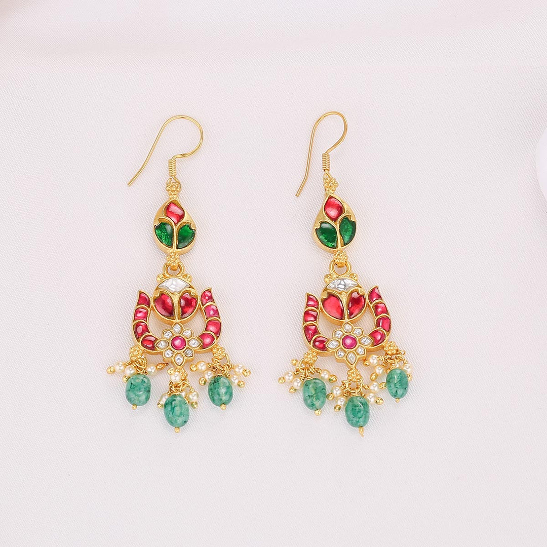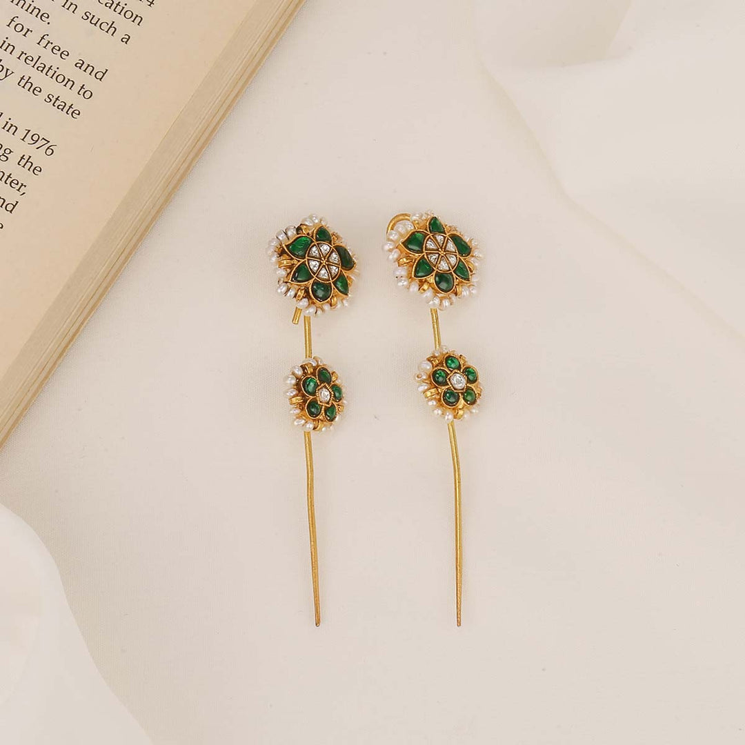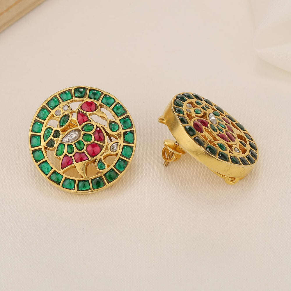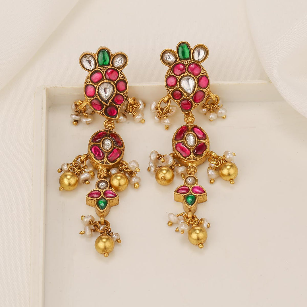 Gold Plated Silver Kundan Earrings | Gold Plated Stone Studs | Silver Pearls Earrings
