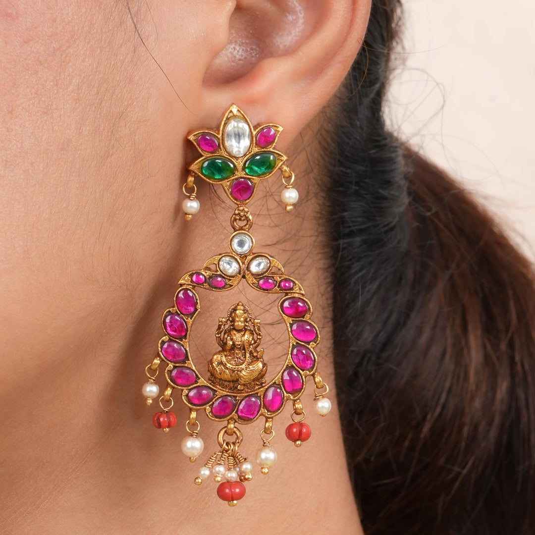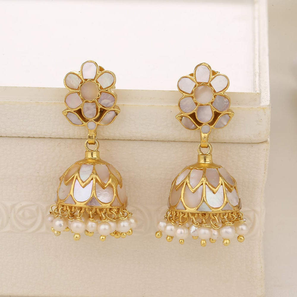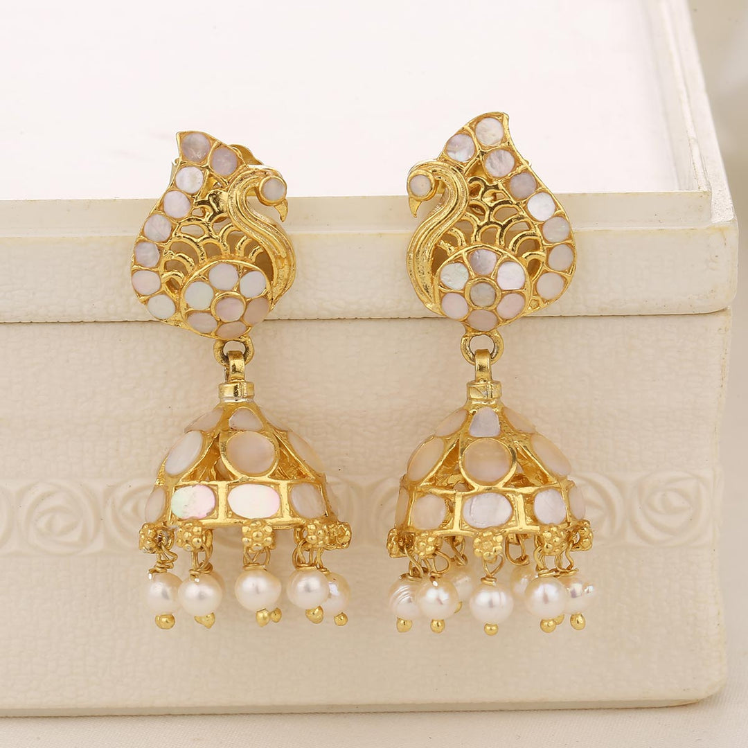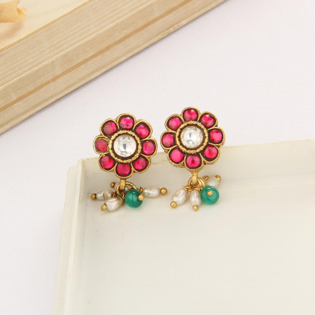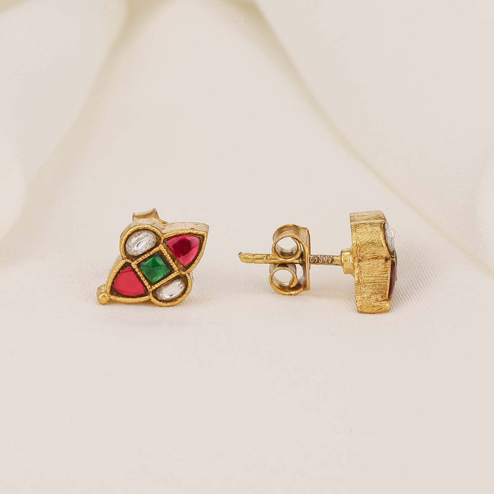 Gold Plated Silver Kundan Earrings | Gold Plated Stone Studs | Silver Pearls Earrings