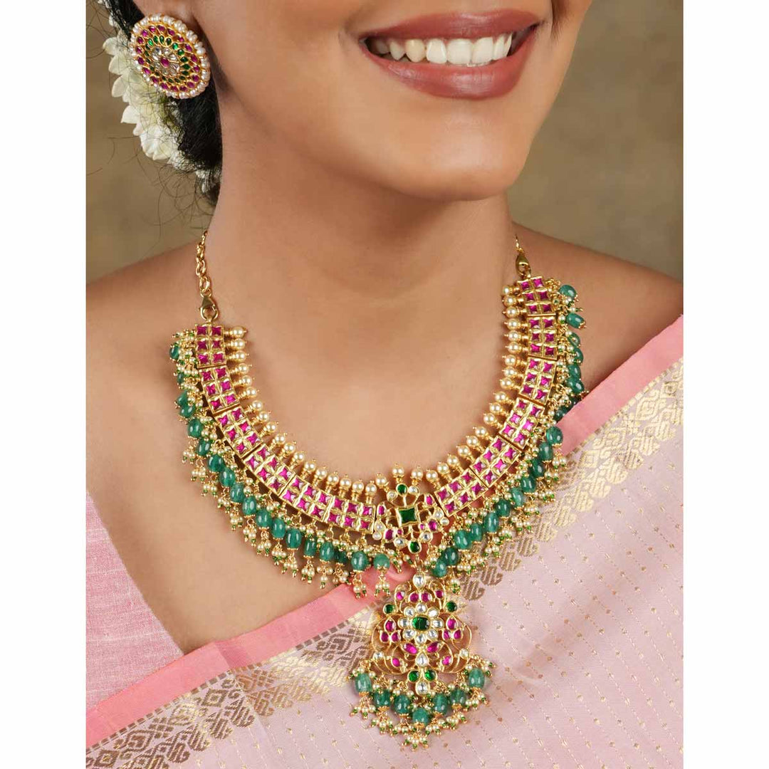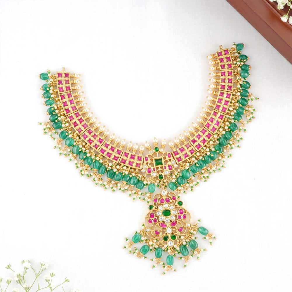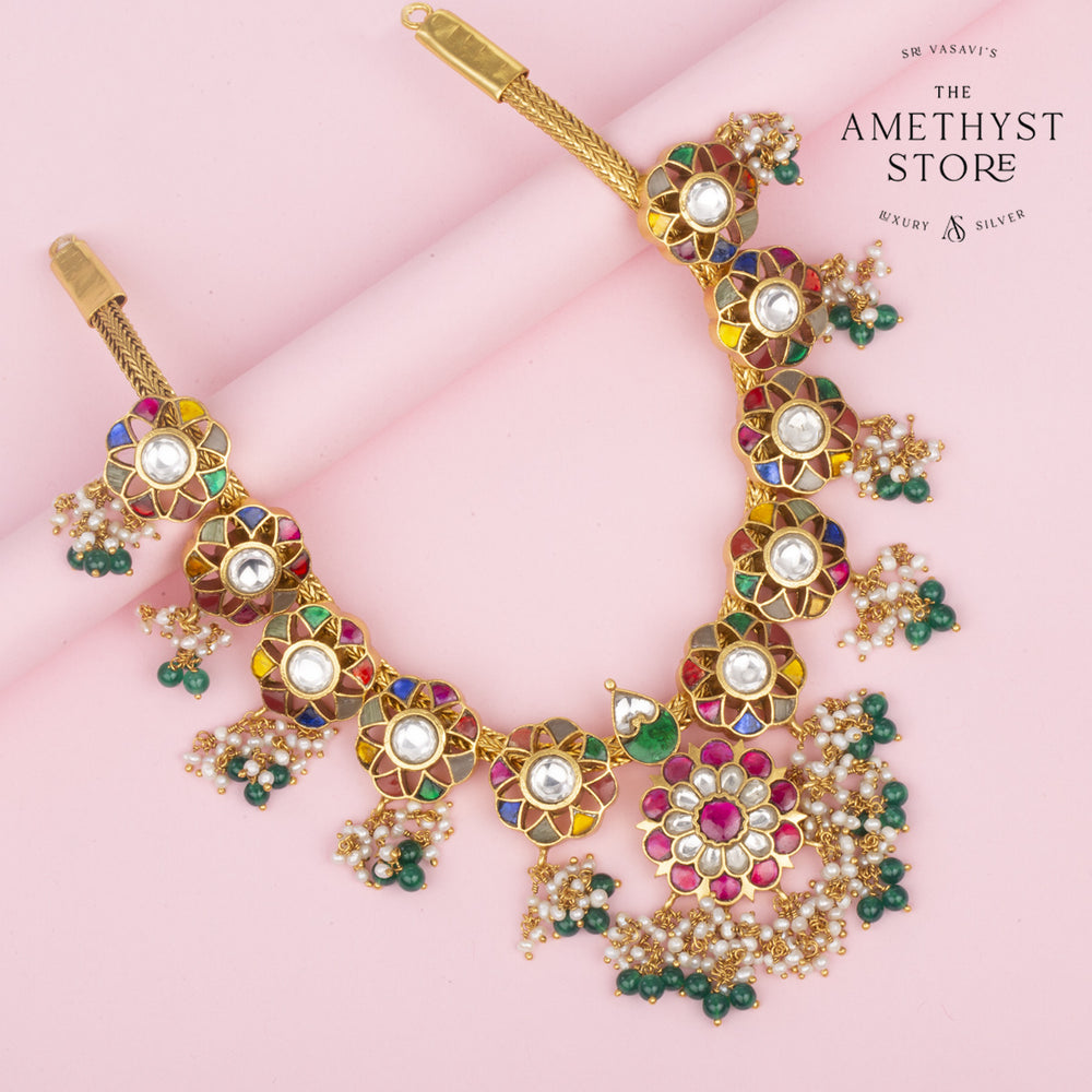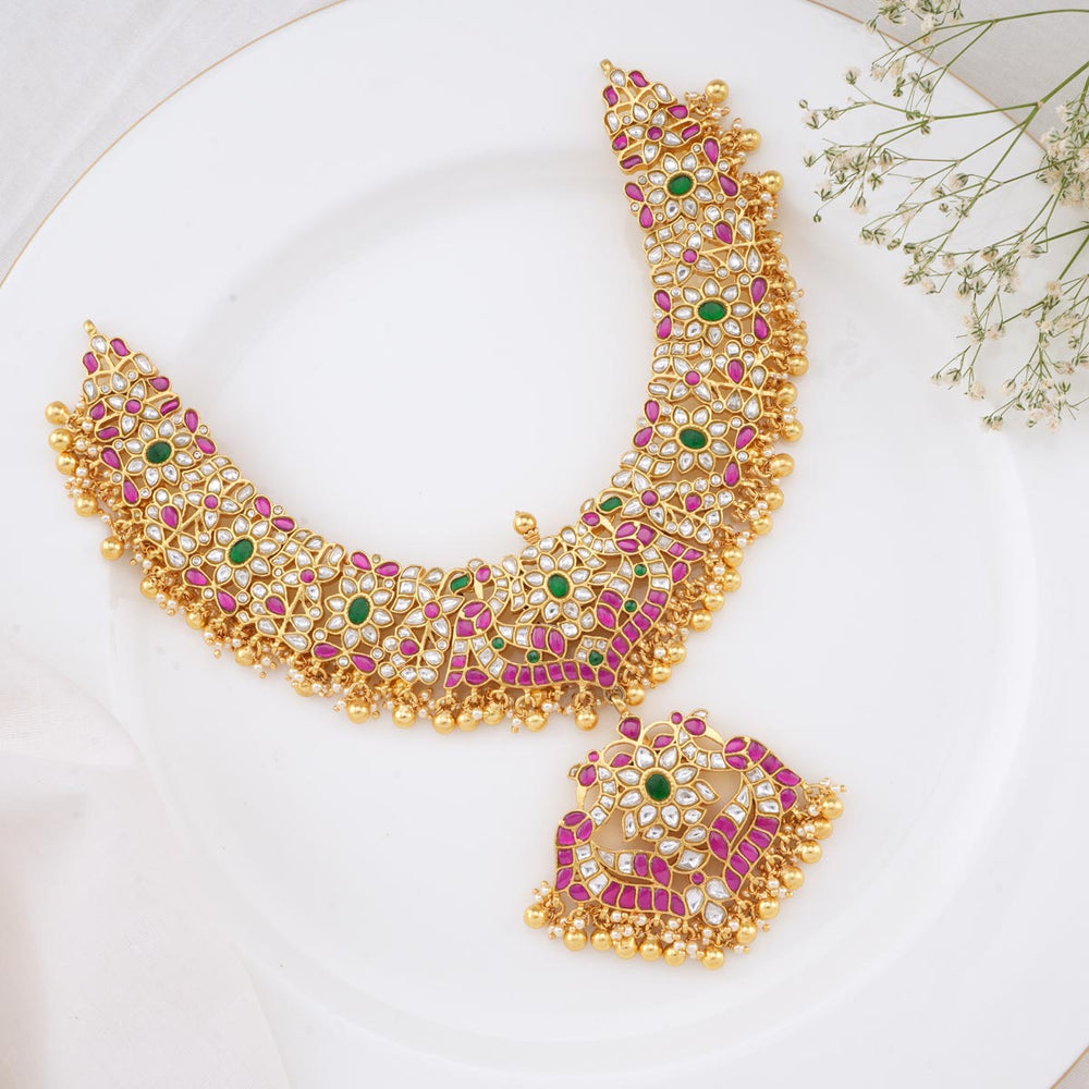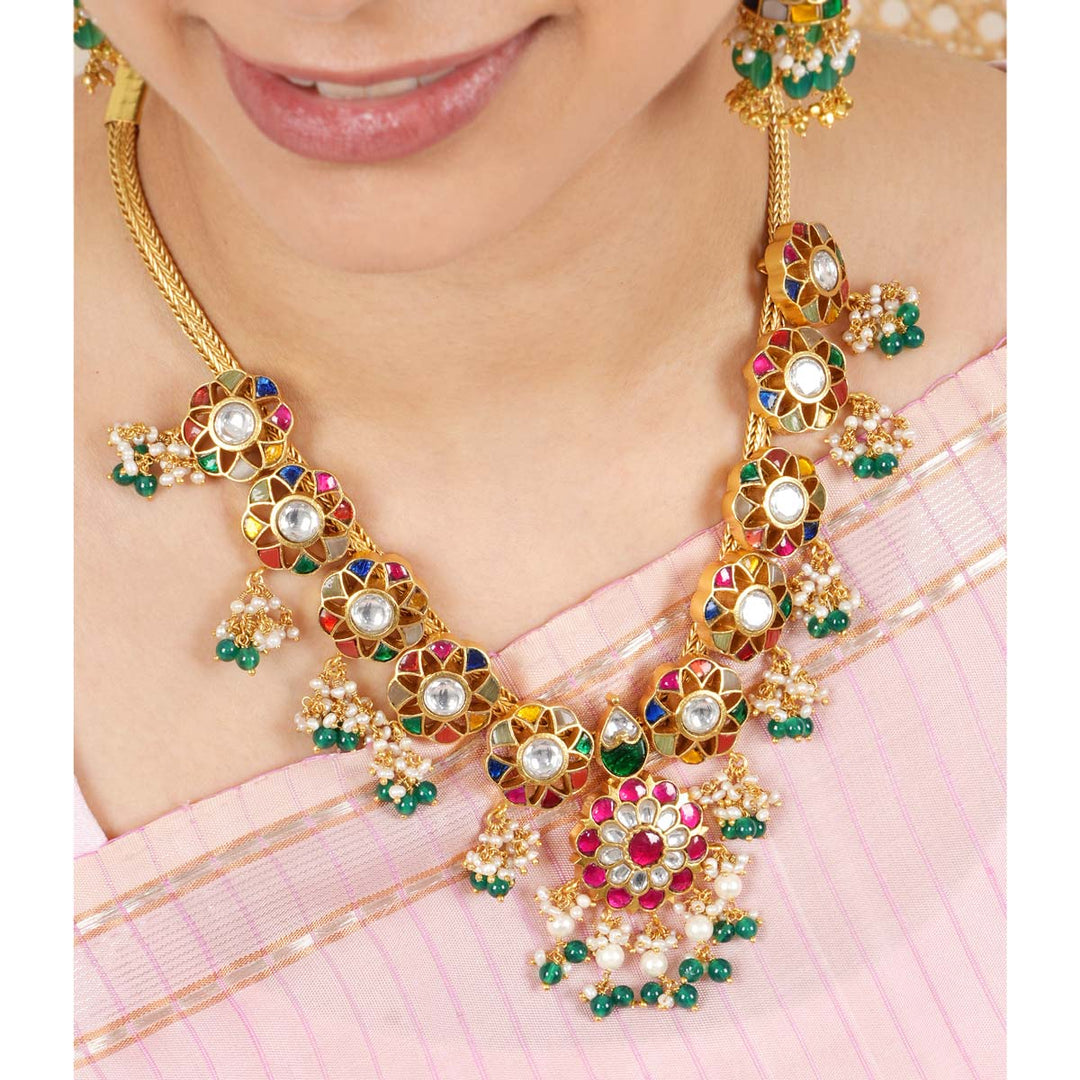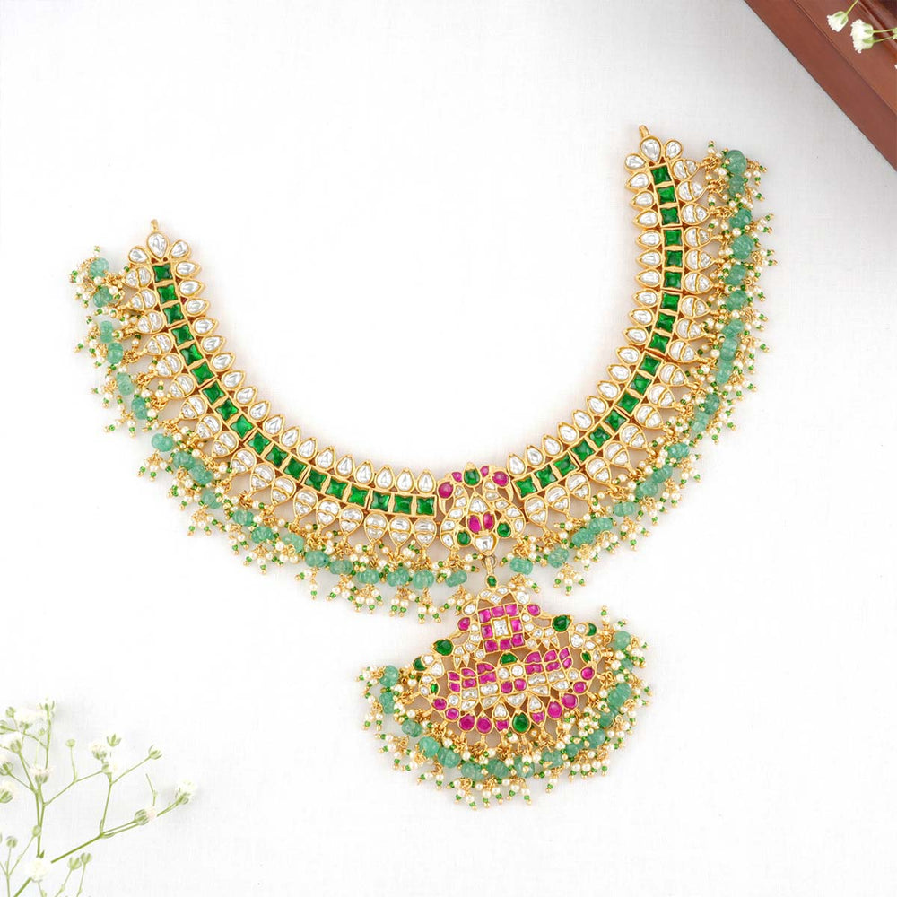 Gold Plated Silver Kundan Necklace | Buy Kundan Silver Necklace Online