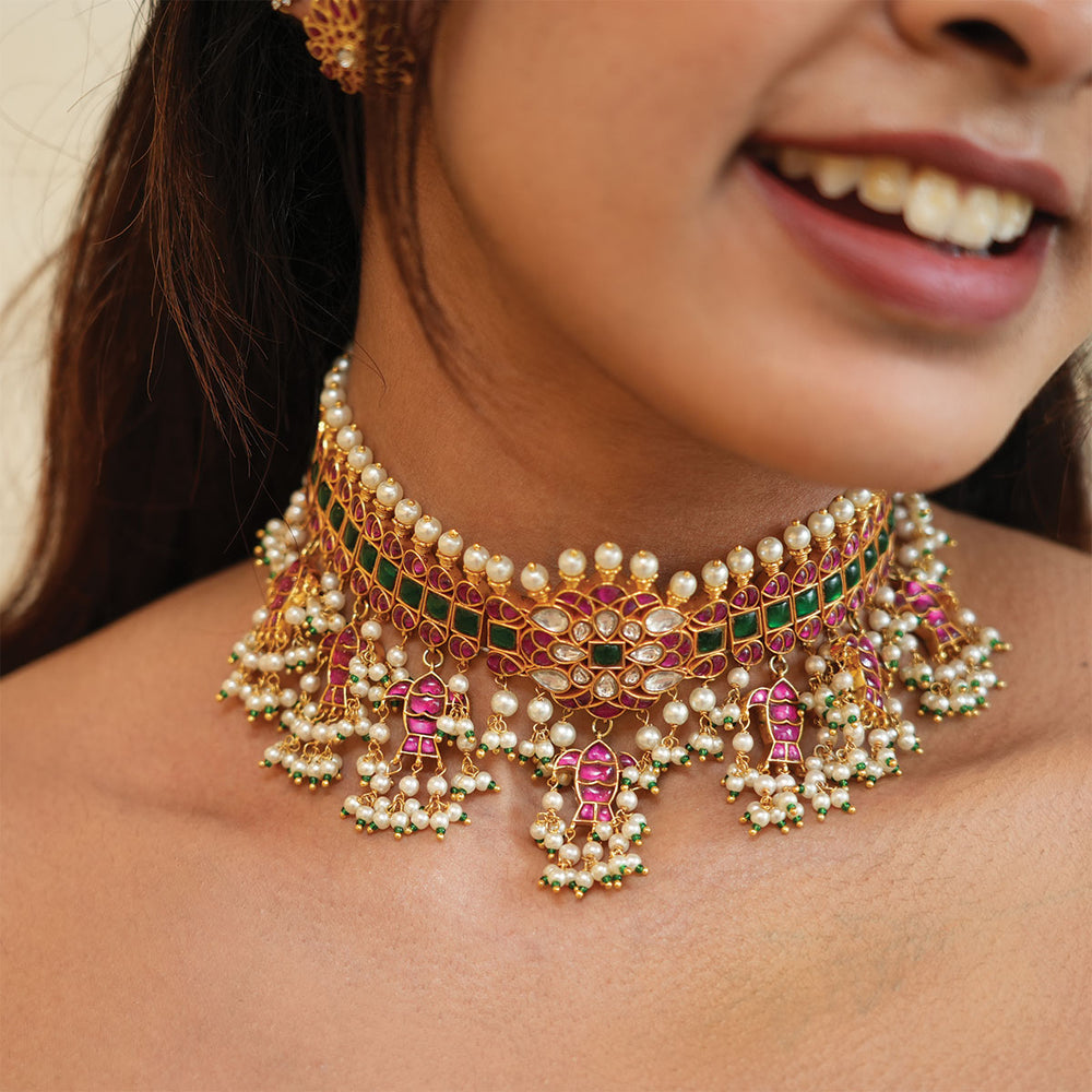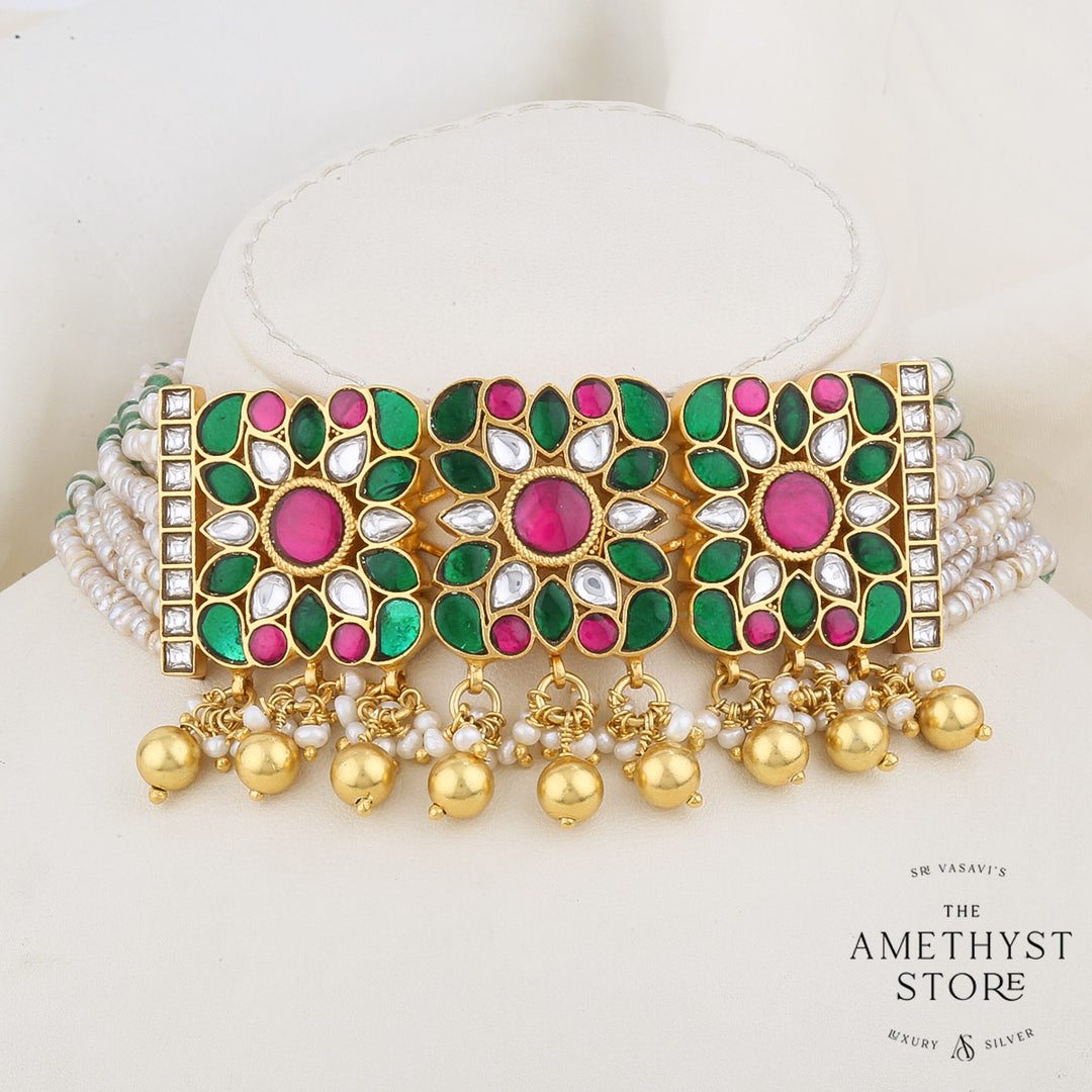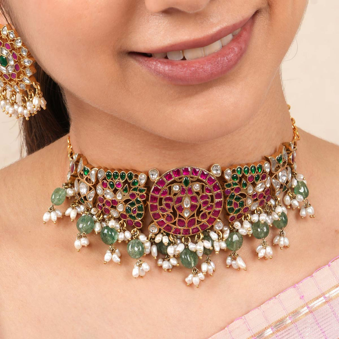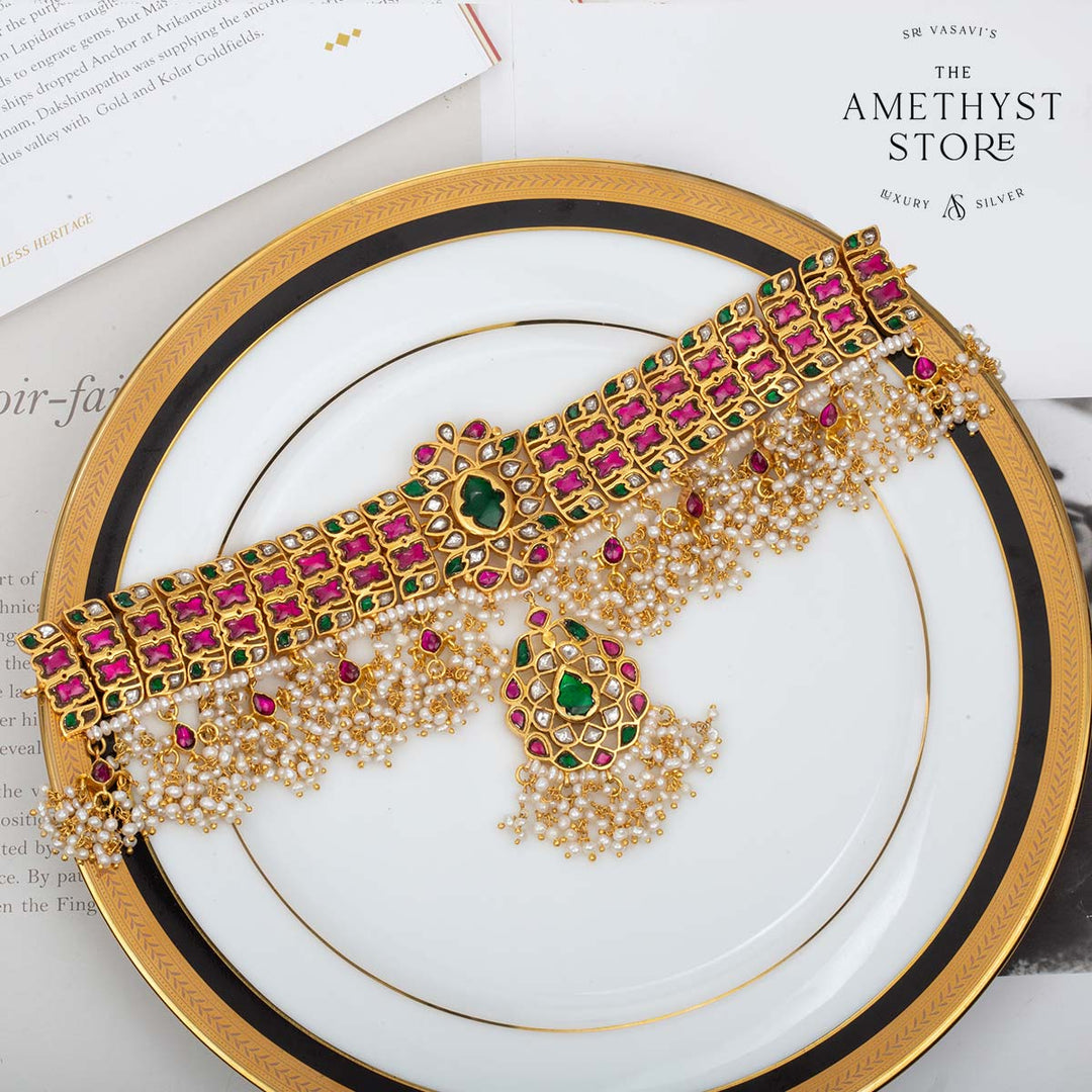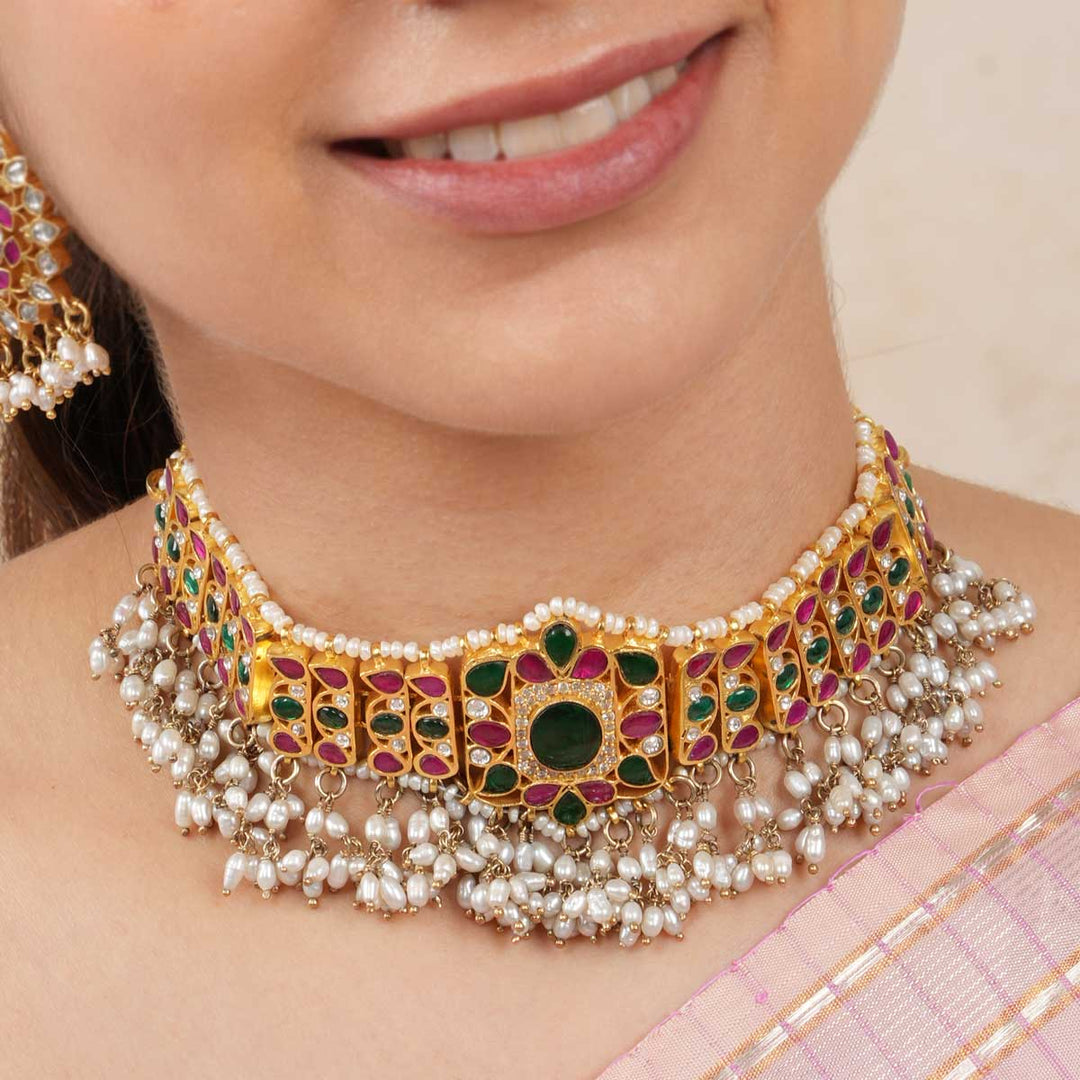 Gold Plated Silver Kundan Necklace | Buy Kundan Silver Necklace Online