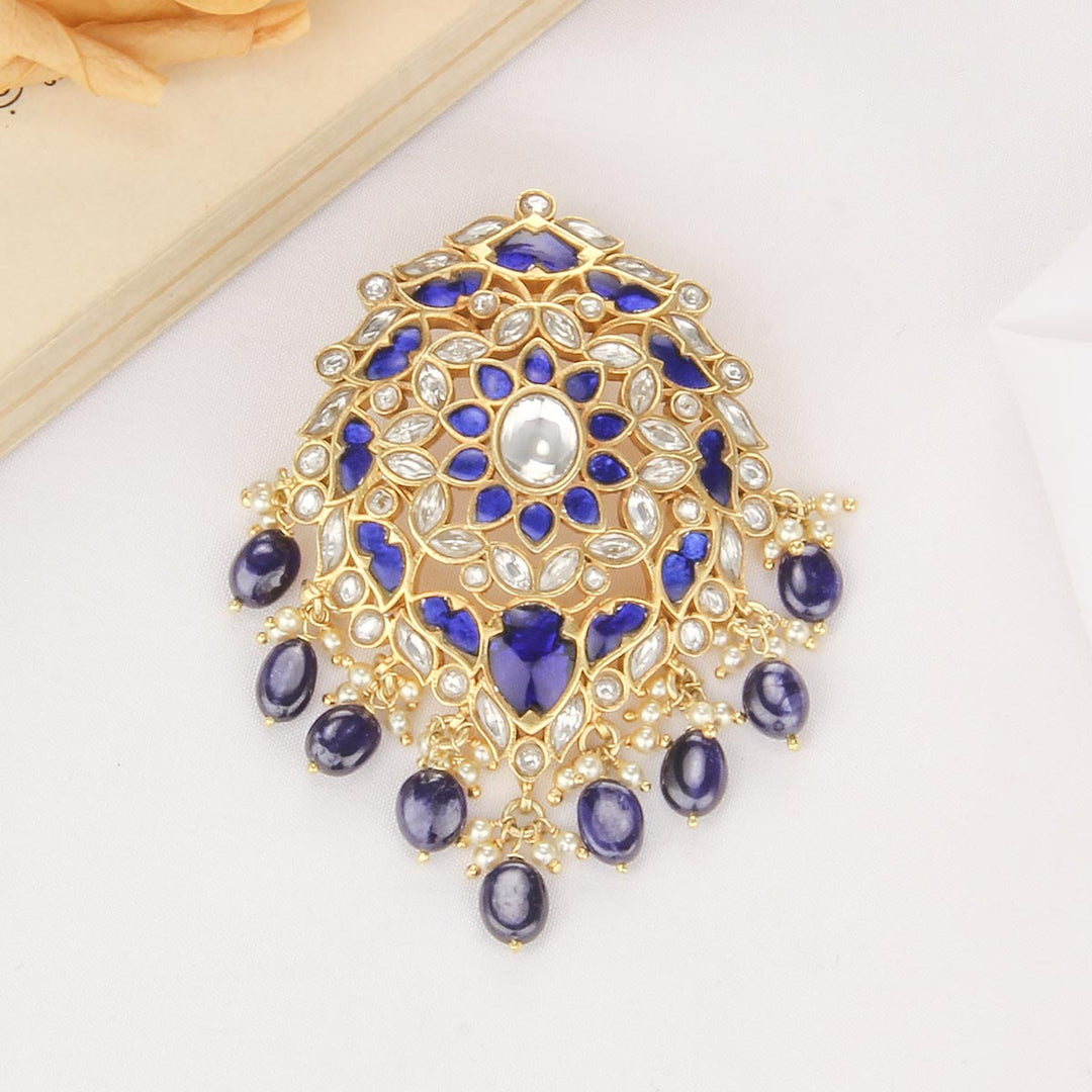 Gold Plated Kundan Silver Pendant | Silver Kundan Stone Pendant | 925 Silver Kundan Pendant