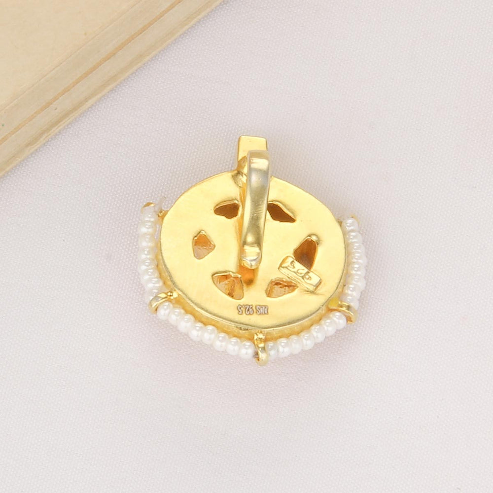 Gold Plated Kundan Silver Pendant | Silver Kundan Stone Pendant | 925 Silver Kundan Pendant