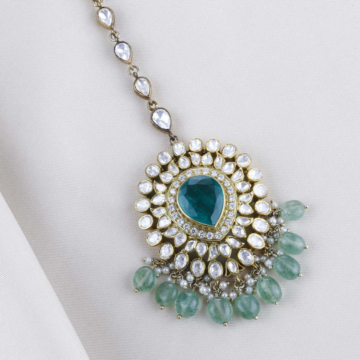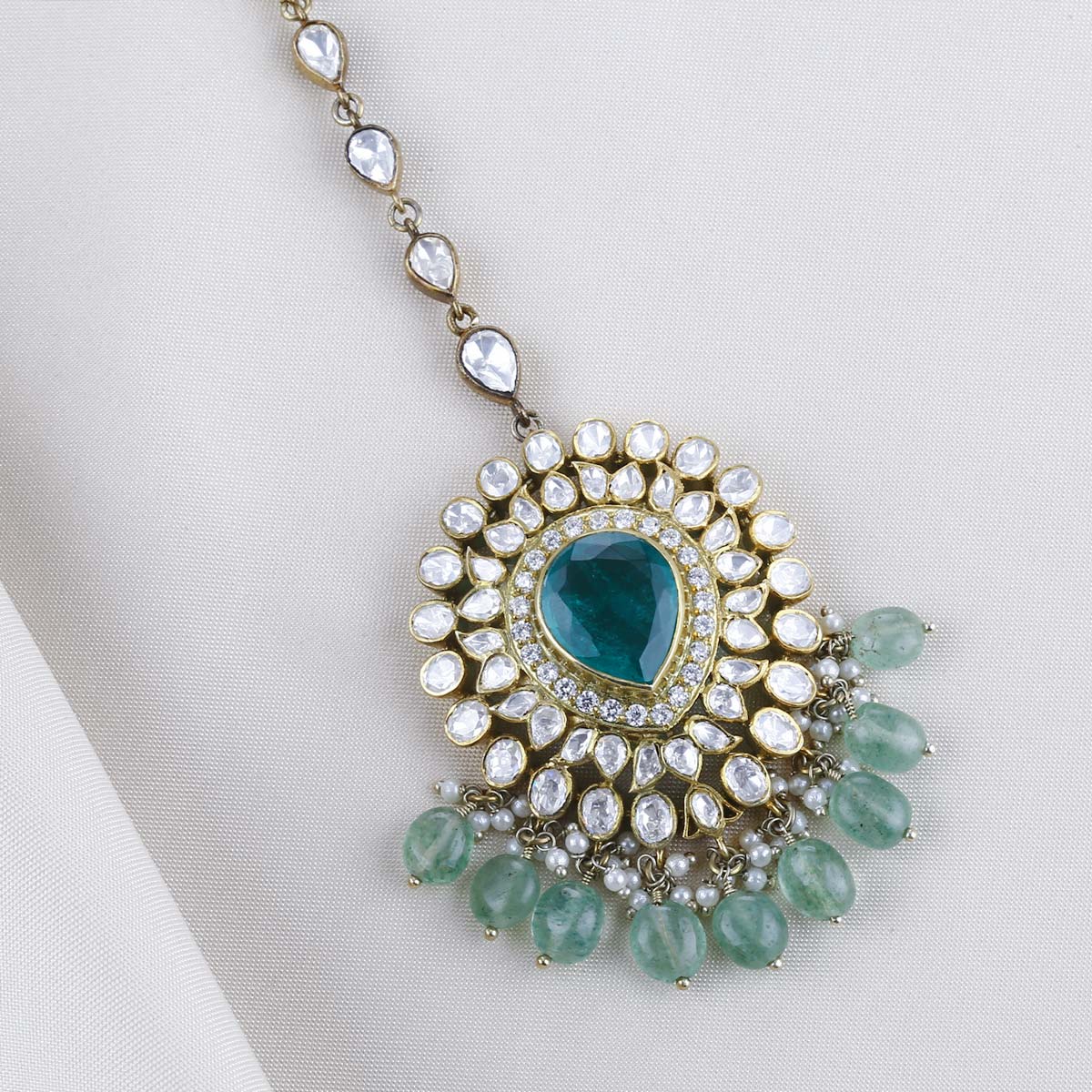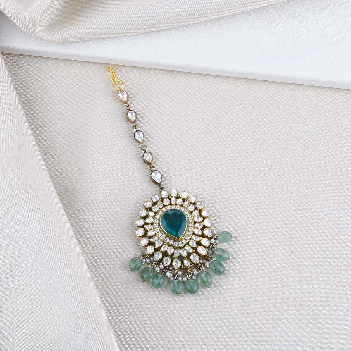 92.5 Silver, Victorian Maangtikka studded with Gem Stones.